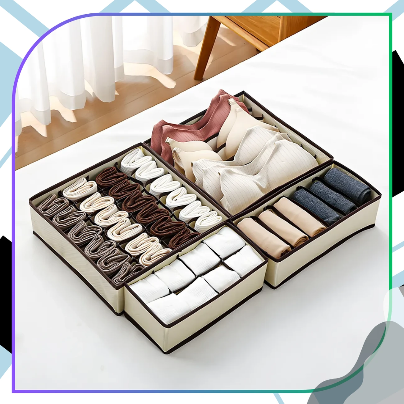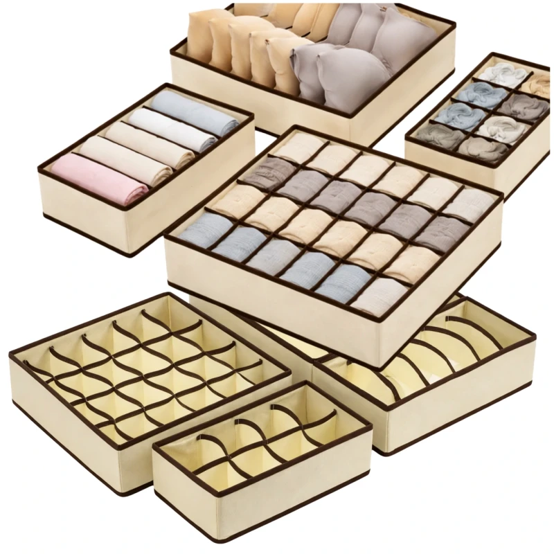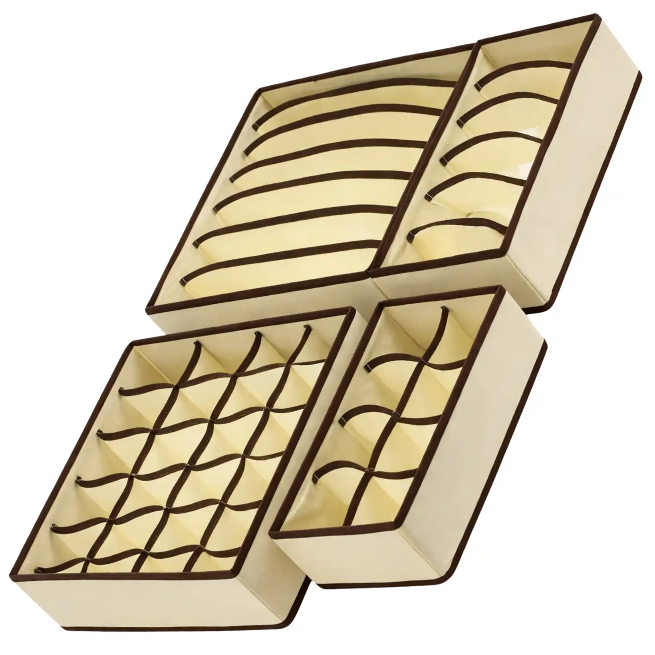 Beżowy Organizer Na Bieliznę Zestaw 4 Pojemników Do Szafy Składany