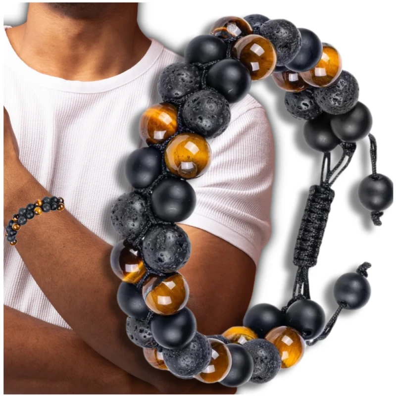 Bransoletka z tygrysiego oka i skały wulkanicznej z regulacją