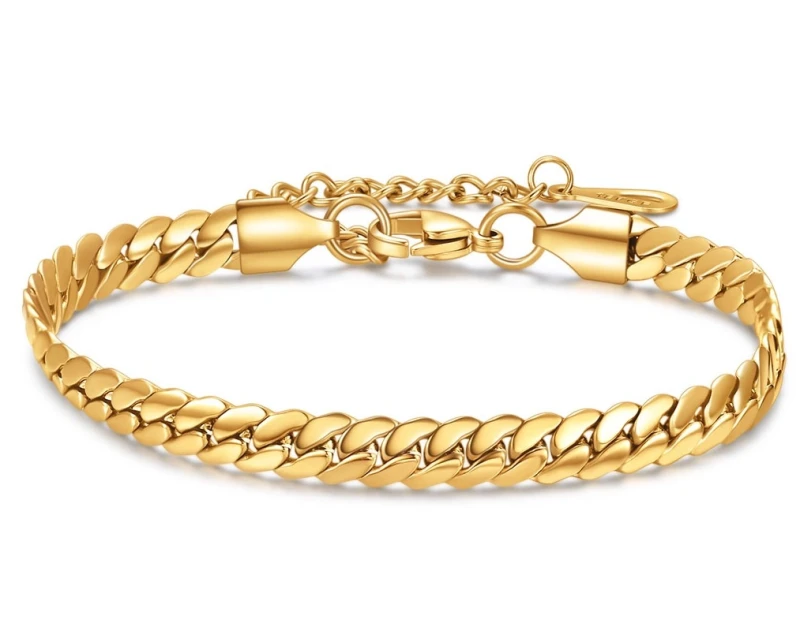 Bransoletka złota elegancka stal chirurgiczna wygląda atrakcyjnie, dlatego świetnie pasuje nie tylko do letniej sukienki, ale również do eleganckiej bluzki czy stylowej garsonki.