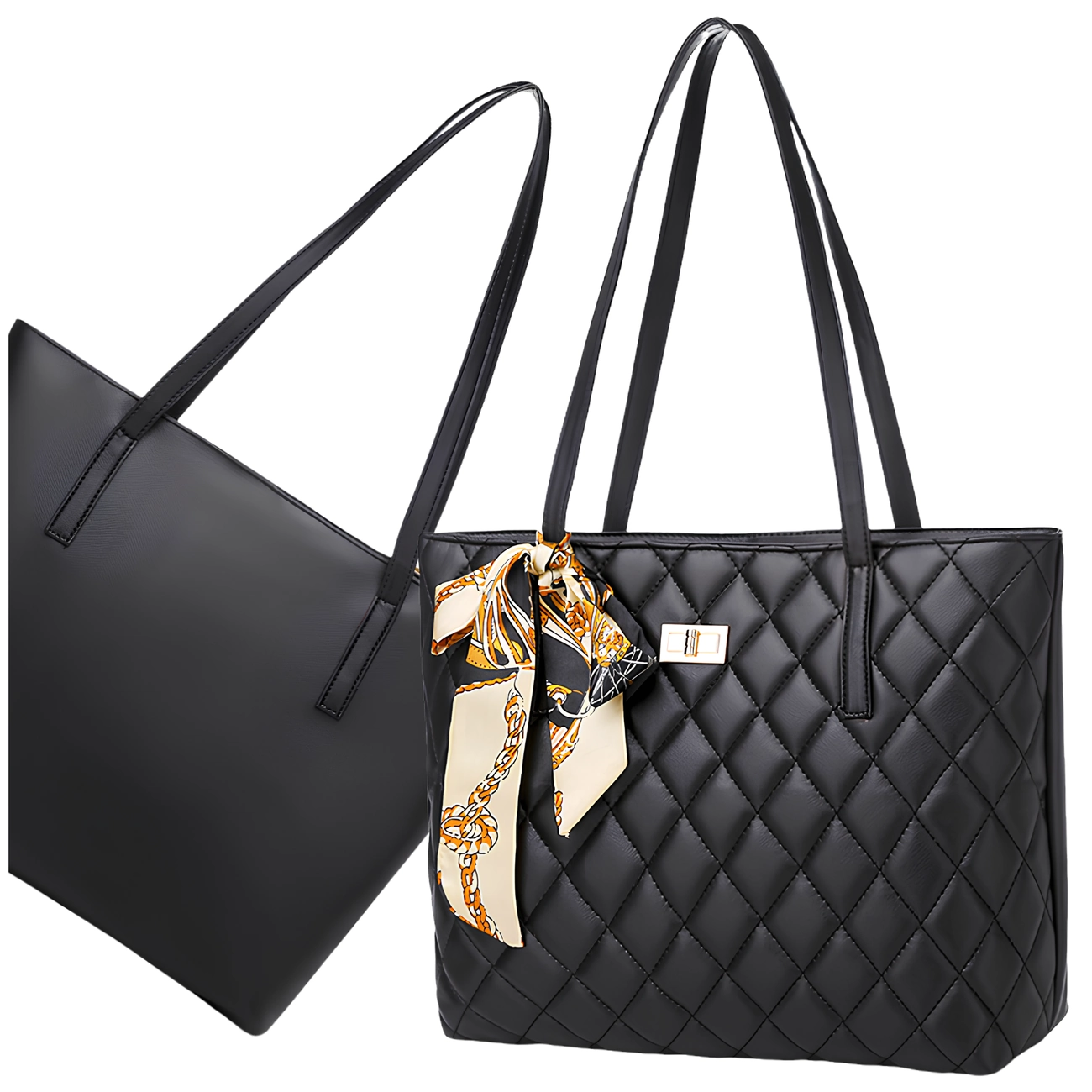 Czarna Torebka Damska Tote Pikowana Duża Pojemna Elegancka