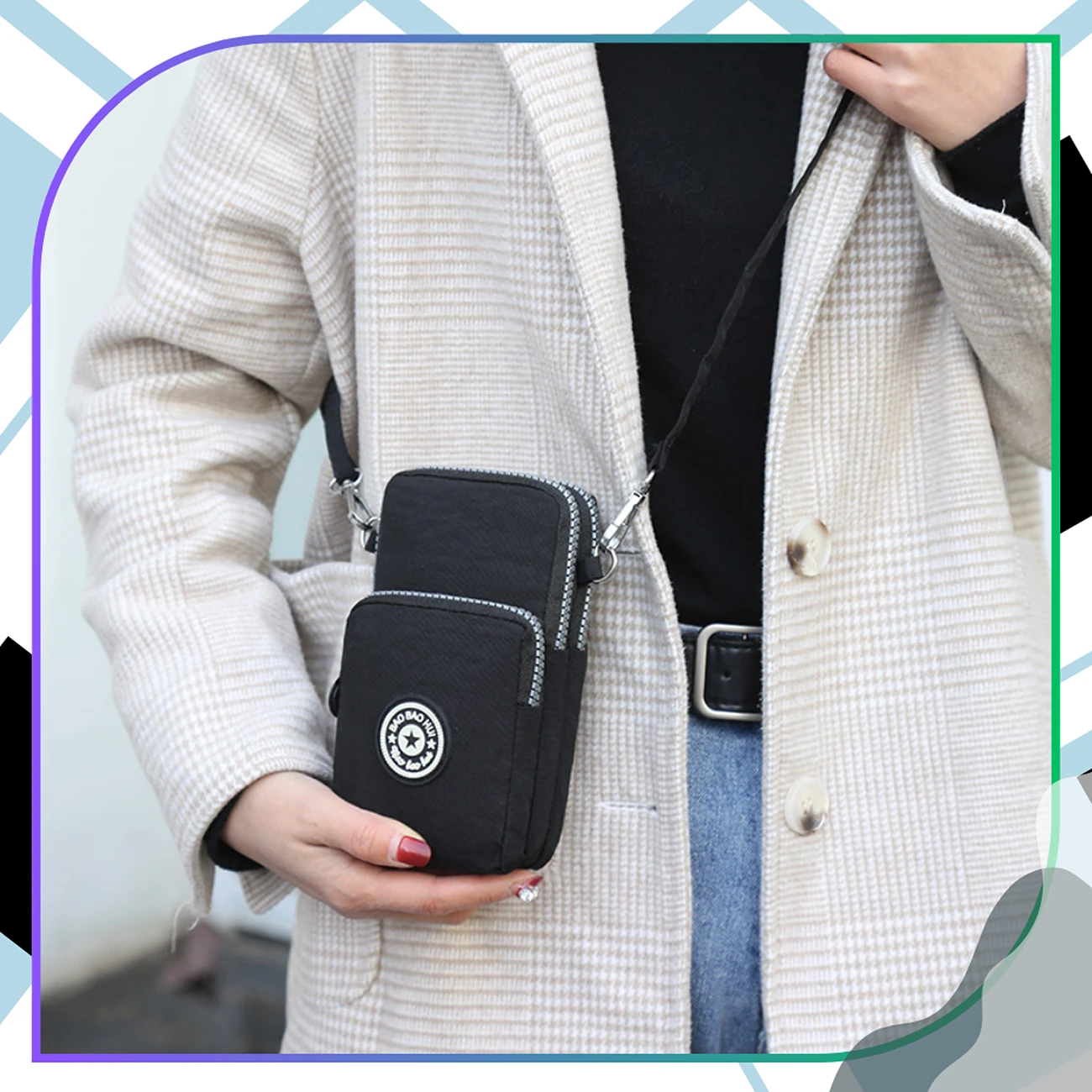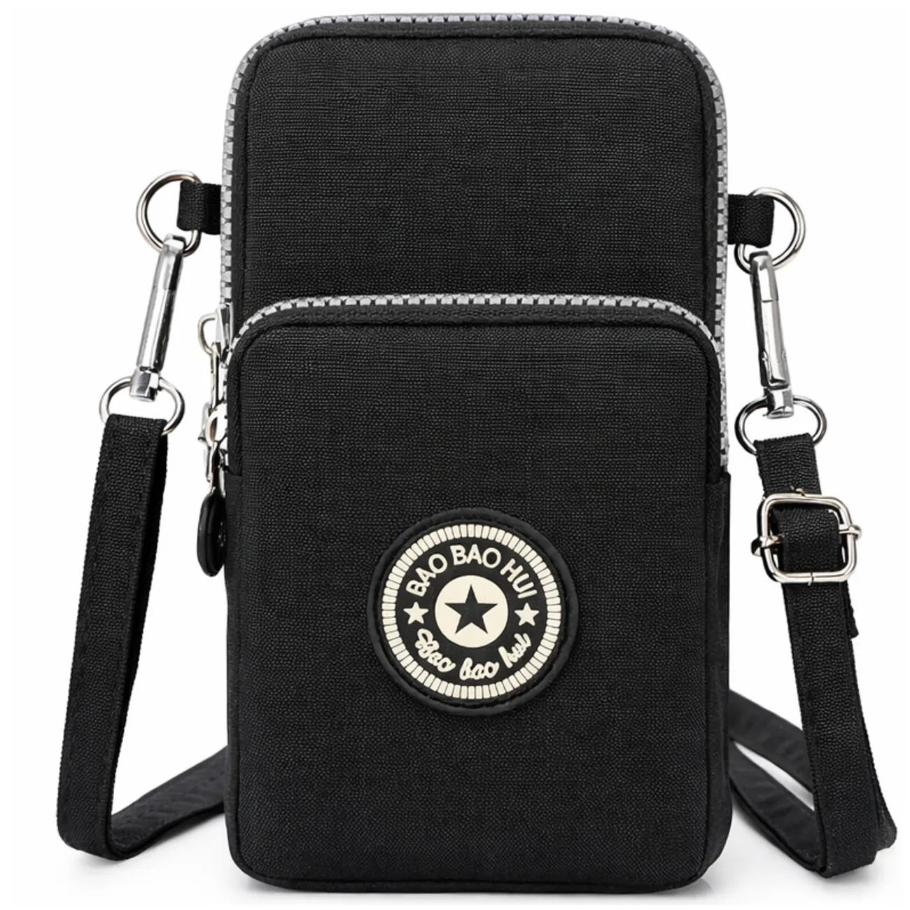 Torebka pomieści większość smartfonów dostępnych na rynku, takich jak iPhone, Samsung, Xiaomi, Huawei, Sony, LG, czy Nokia. Dzięki trzem przegródkom zamykanym na zamek z łatwością przechowasz wszystkie niezbędne drobiazgi. Dwie główne kieszenie są wyjątkowo pojemne – idealne na telefon, portfel, klucze czy inne niezbędne akcesoria. Trzecia przegródka zapewnia dodatkowe miejsce na drobiazgi, które chcesz mieć zawsze pod ręką.