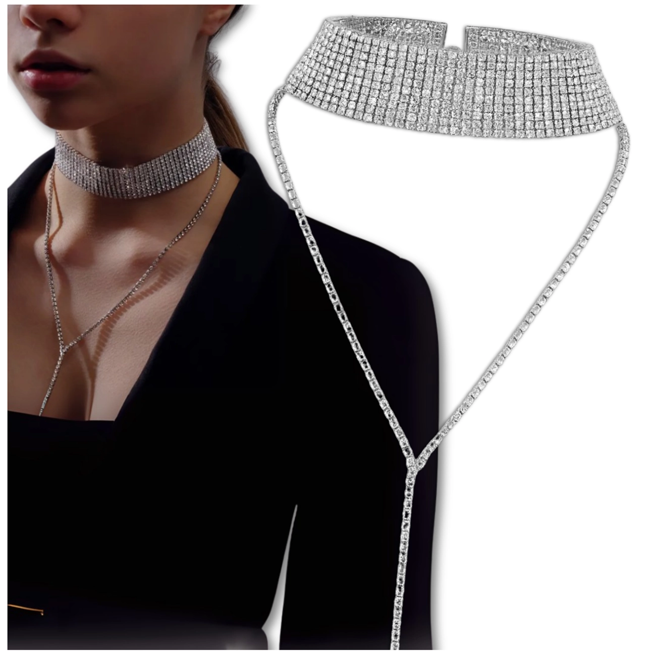 Długi Naszyjnik damski obroża z cyrkonii choker srebrny