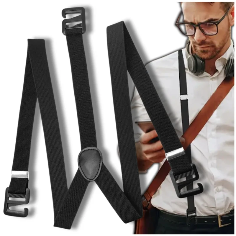 Wykonane z najwyższej jakości gumy galanteryjnej oraz elementów z trwałej i miękkiej skóry ekologicznej, te szelki nie tylko świetnie wyglądają, ale również wyróżniają się wyjątkową trwałością i odpornością na intensywne użytkowanie. Czarny kolor sprawia, że szelki te pasują do każdej stylizacji – od formalnych garniturów, przez casualowe zestawy, aż po bardziej swobodne stylizacje.