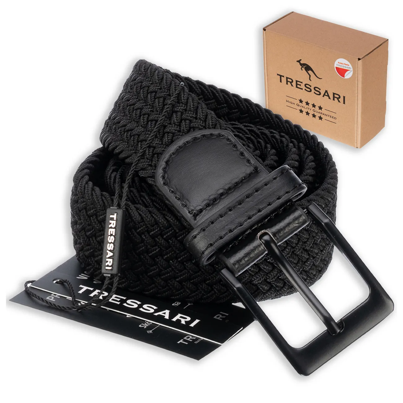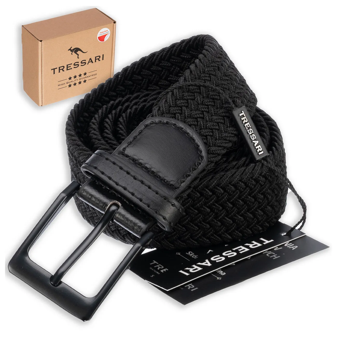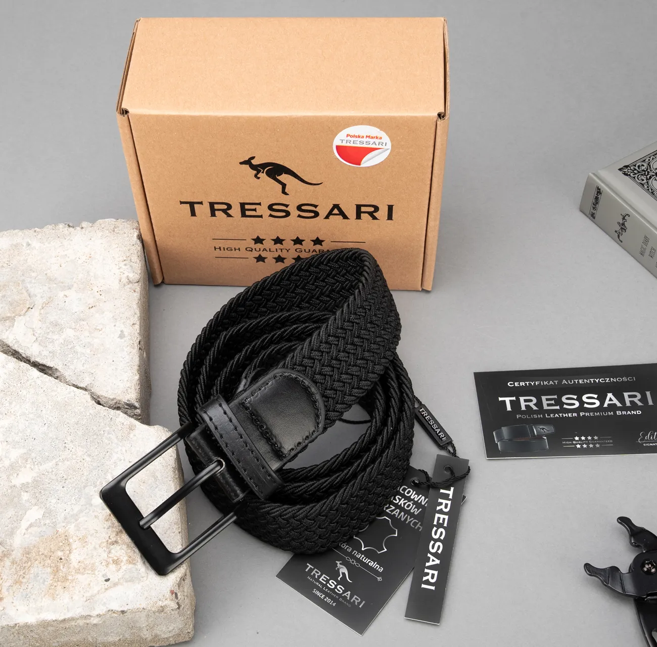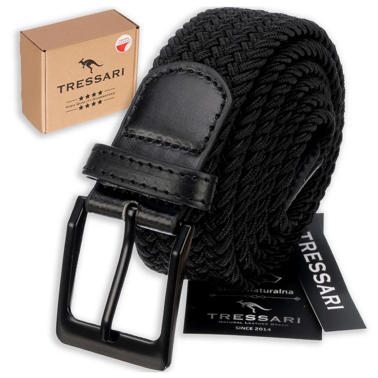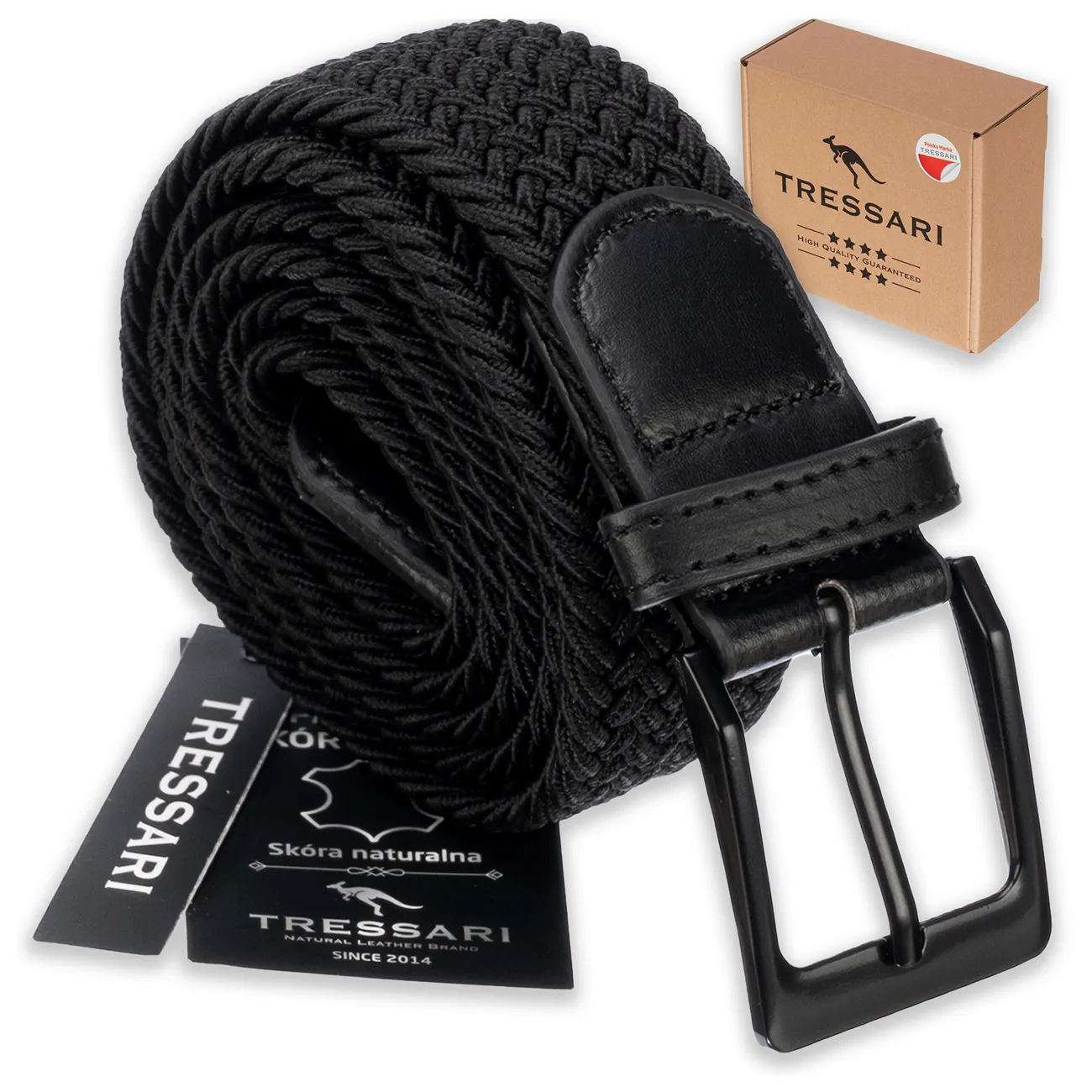 Elastyczny pasek unisex pleciony parciany do spodni mocny czarny Tressari