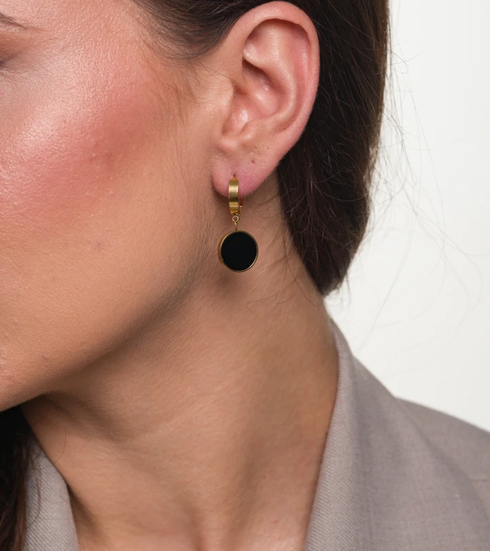 Luksusowe Pozłacane Kolczyki ze Stali Chirurgicznej z Czarną Monetą (stainless steel) 316L