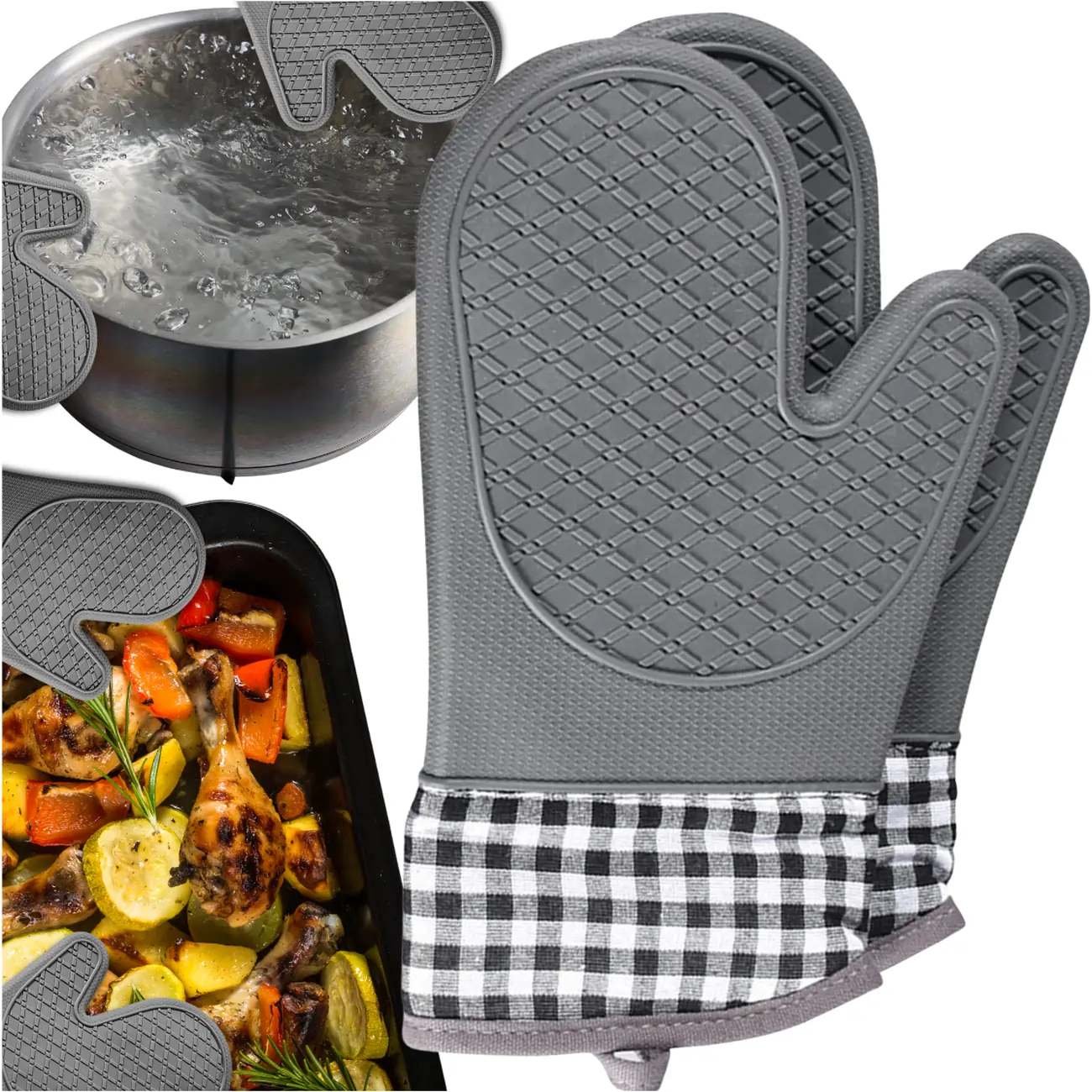 Komplet rękawic kuchennych silikonowe antypoślizgowe szare