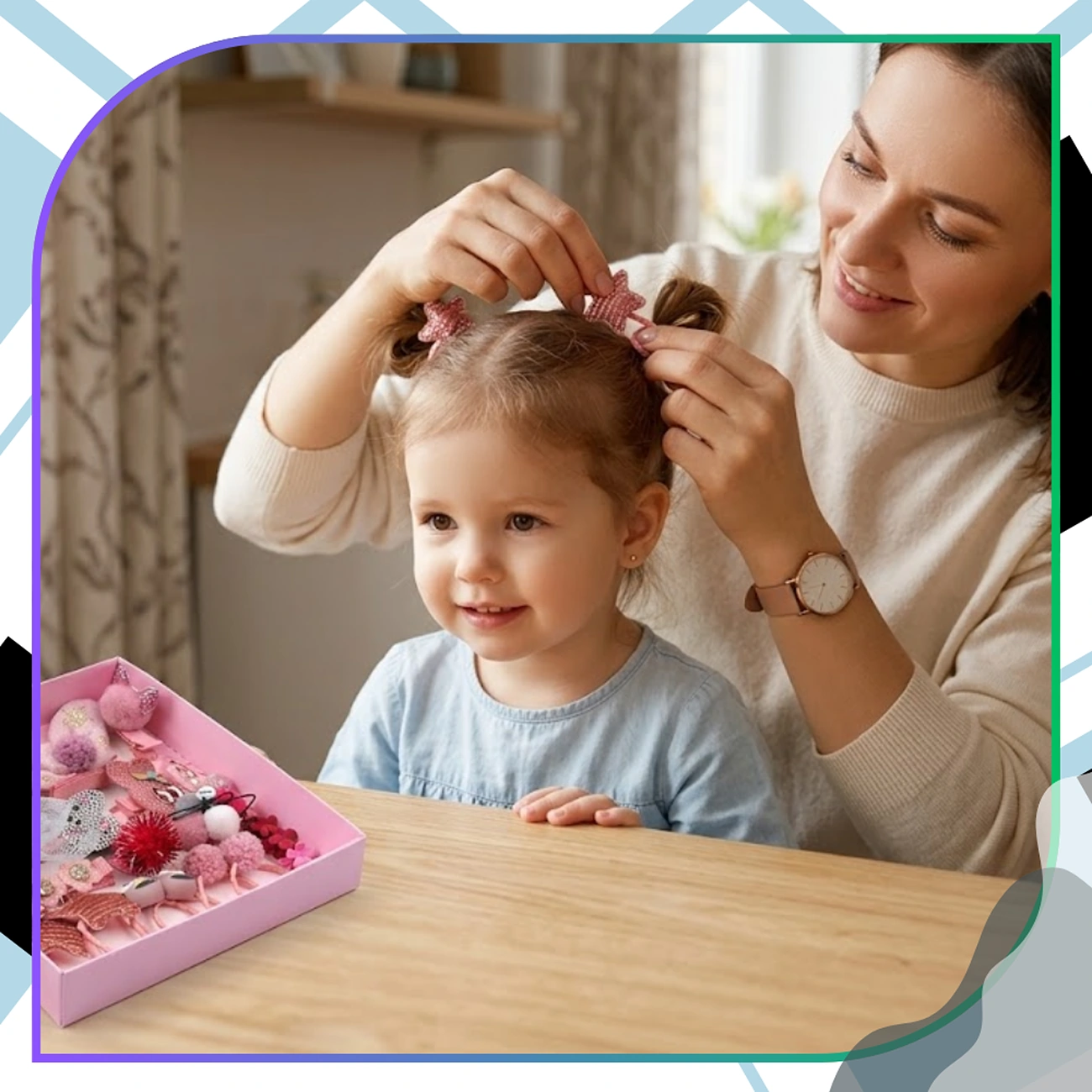 Dodaj kreatywności i uroku do stylizacji Twojej małej księżniczki z naszym Zestawem 24 Ręcznie Robionych Spinek dla Dziewczynki!