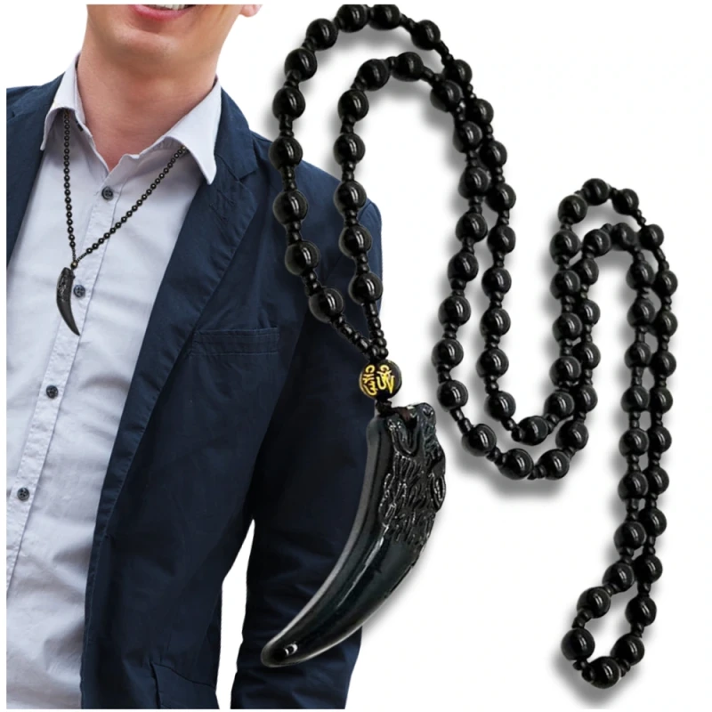 Odkryj wyjątkowy męski naszyjnik z motywem wilczego zęba, wykonany z naturalnych koralików z czarnego obsydianu. Ten naszyjnik to połączenie surowej elegancji i siły, które dodadzą charakteru każdej stylizacji. Zawieszka w kształcie rzeźbionego wilczego zęba o długości 5,5 cm to symbol mocy, odwagi i niezależności, a czarne koraliki z obsydianu podkreślają jego tajemniczy i wyrazisty wygląd.