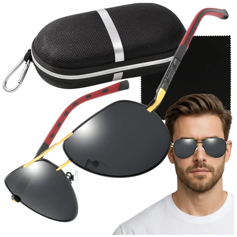 Proponowane przez nas, certyfikowane okulary męskie pilotki polaryzacyjne przeciwsłoneczne wysyłane są do klienta z darmowym, twardym etui.