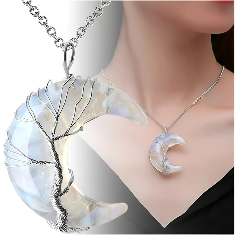 Naszyjnik stal chirurgiczna księżyc minerały biały kryształ