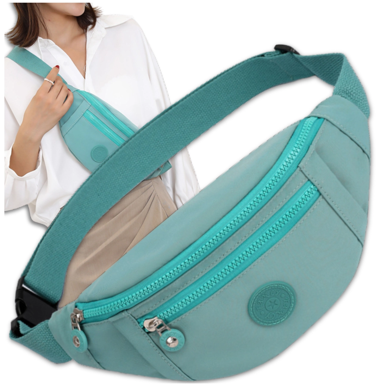 Postaw na wygodę i styl z nową nerka biodrową unisex, wykonaną z trwałej i praktycznej tkaniny Oxford. Ten model w modnym turkusowym/morskim kolorze to idealne rozwiązanie dla każdego, kto ceni sobie komfort oraz funkcjonalność w codziennym użytkowaniu. Dzięki połączeniu nowoczesnego designu z praktycznym układem kieszeni, ta saszetka biodrowa sprawdzi się zarówno w mieście, jak i na szlaku.