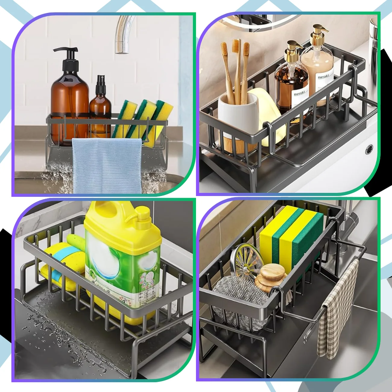 Stylowy i funkcjonalny organizer kuchenny w kolorze szarym to idealne rozwiązanie dla osób, które chcą uporządkować przestrzeń wokół zlewu. Dzięki przemyślanej konstrukcji pozwala na wygodne przechowywanie wszystkich niezbędnych akcesoriów w jednym miejscu.