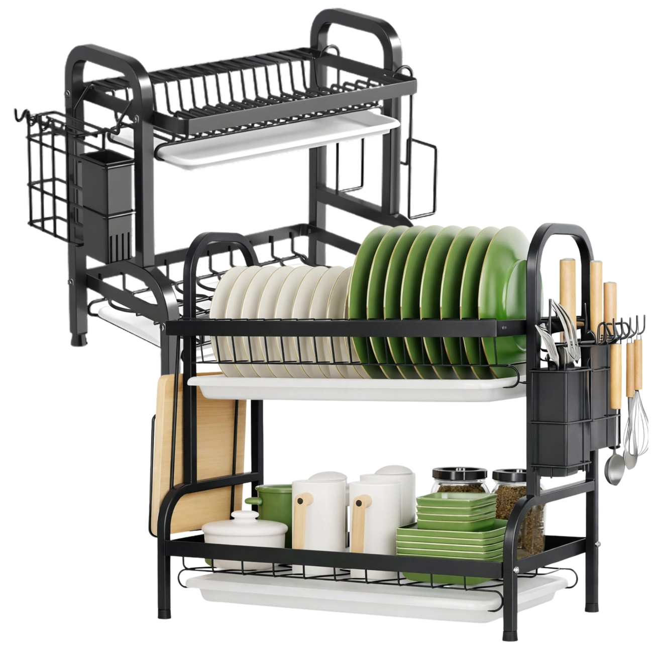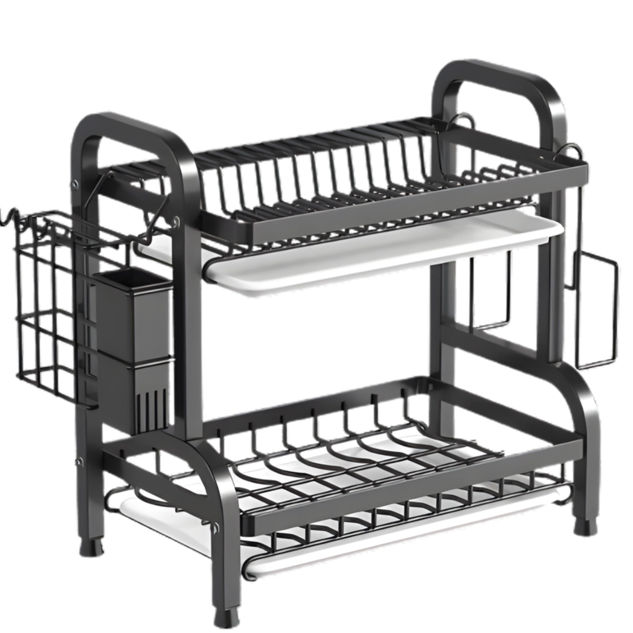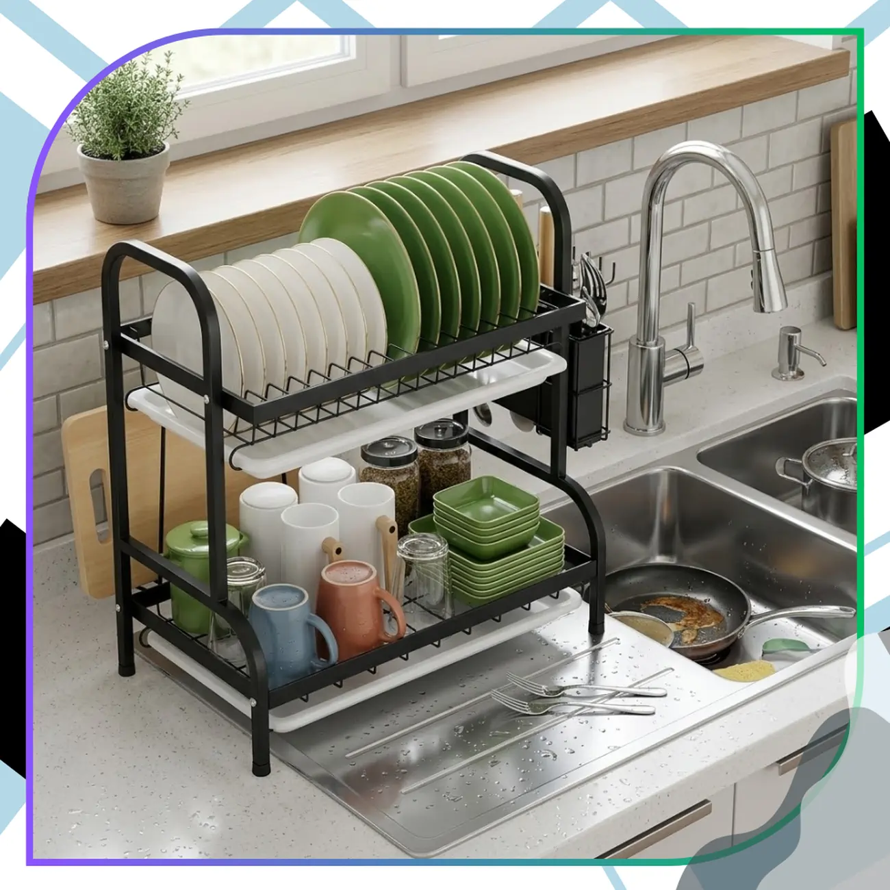 Nowoczesna suszarka do naczyń z dodatkowymi akcesoriami to kompleksowe rozwiązanie do organizacji przestrzeni przy zlewie. Dzięki dwupoziomowej konstrukcji umożliwia jednoczesne suszenie wielu naczyń, zachowując porządek i wygodę użytkowania.
