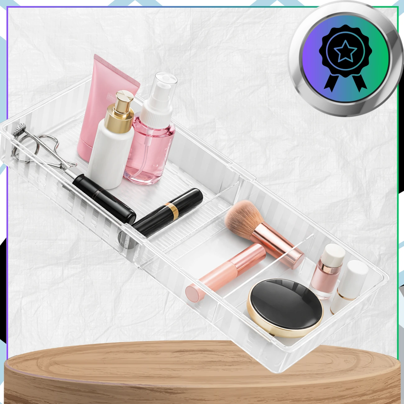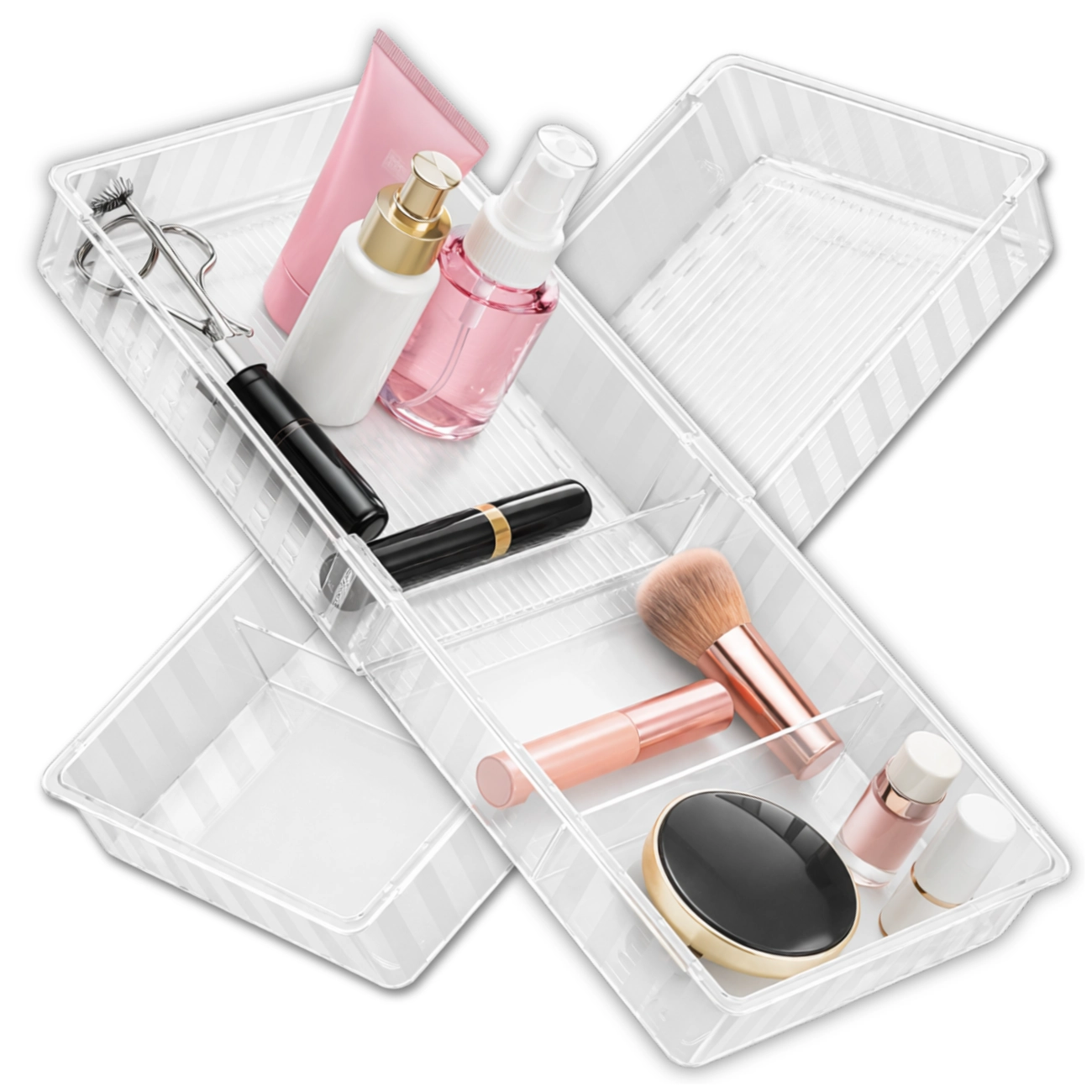 Przezroczysty regulowany organizer do szuflady na kosmetyki i makijaż