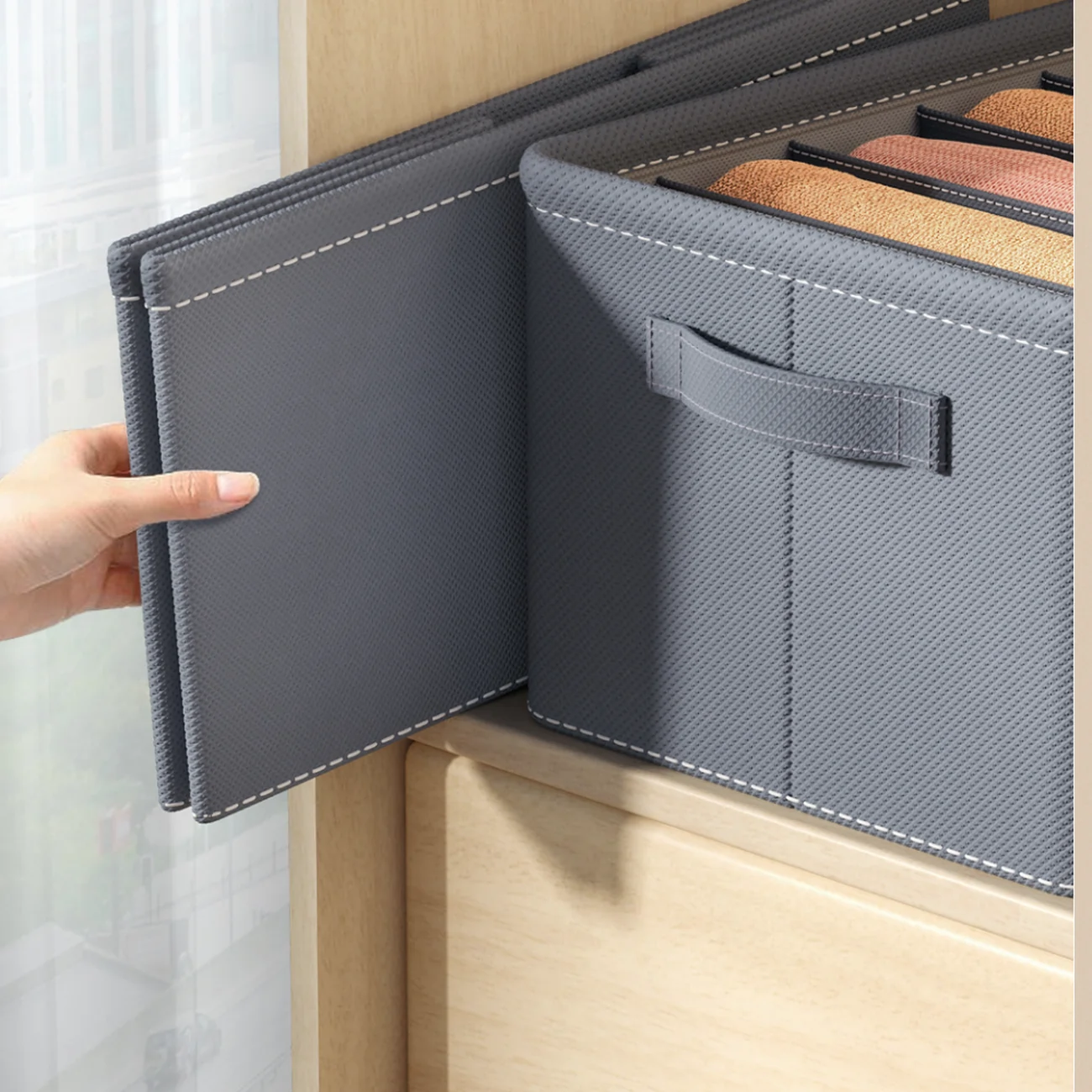 Atrakcyjny cenowo, wykonany z najwyższej jakości materiału, sztywny do szafki organizer pudełko na ubrania oferowany jest przez nasz sklep internetowy w szarym kolorze.