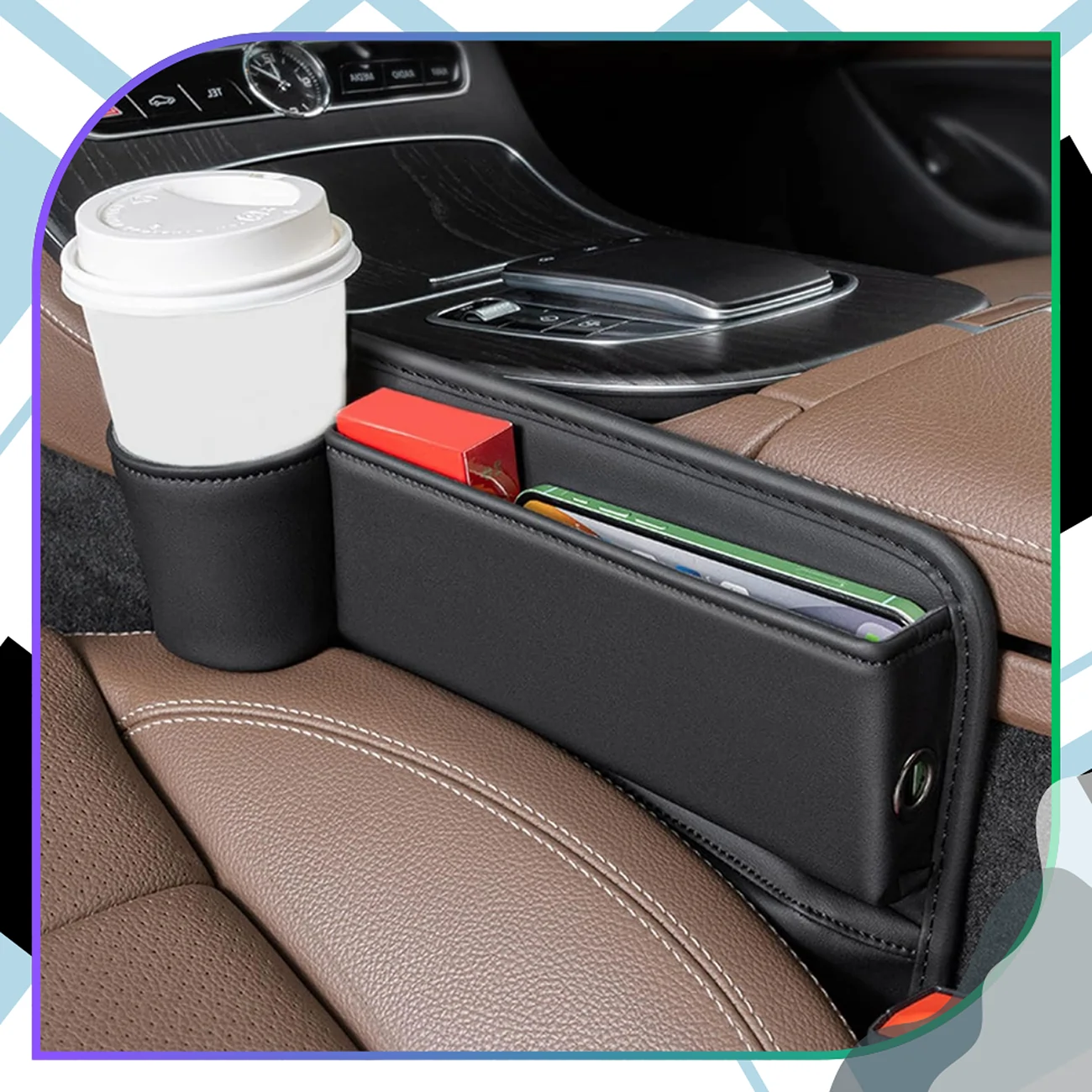 Wybierz organizer samochodowy do szczeliny z uchwytem na kubek po prawej stronie, aby cieszyć się porządkiem, wygodą i elegancją podczas każdej podróży.