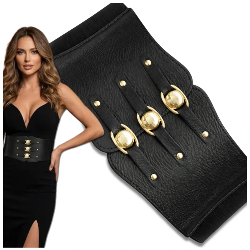 Pasek Damski elastyczny czarny gorset szeroki pas