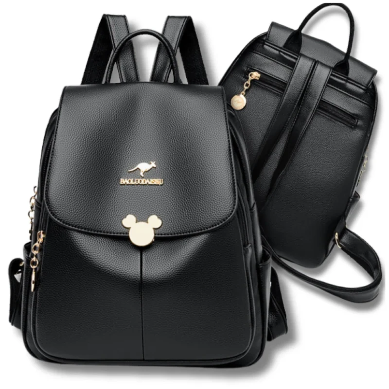 Jednym z wyjątkowych elementów tego plecaka jest ozdobna złota głowa myszki na klapie, która dodaje mu unikalnego charakteru i podkreśla jego elegancki styl. Złote okucia doskonale komponują się z resztą designu, nadając plecakowi luksusowego wyglądu.