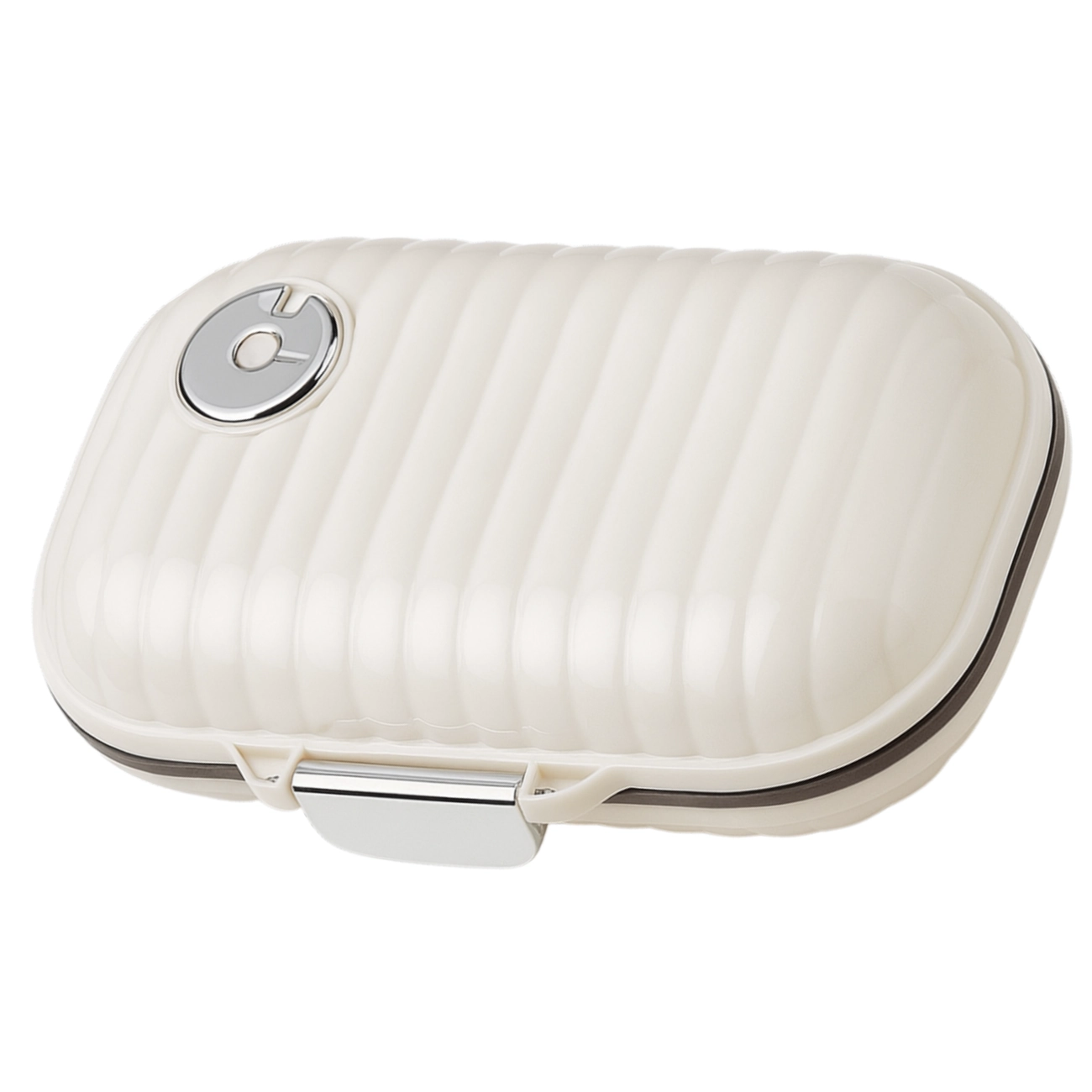 Nowoczesny design przypominający miniaturową walizkę sprawia, że pojemnik prezentuje się elegancko i dyskretnie. Biały kolor oraz żłobiona powierzchnia nadają mu stylowego charakteru, a ergonomiczny kształt ułatwia codzienne użytkowanie.