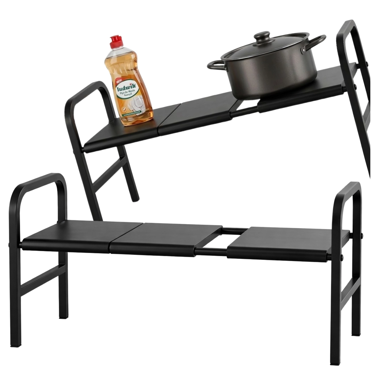 Regał Półka Rozsuwana Organizacja Szafki Kuchennej 53–88 cm Czarny