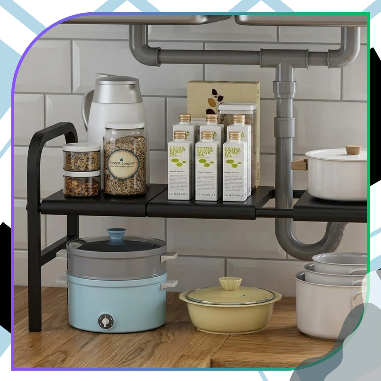 Jeśli szukasz sposobu na lepsze zagospodarowanie miejsca w szafce, ten trzypoziomowy organizer pod zlew będzie idealnym rozwiązaniem. Dzięki przemyślanej konstrukcji pozwala uporządkować przestrzeń, która często jest trudna do wykorzystania ze względu na rury i instalacje.