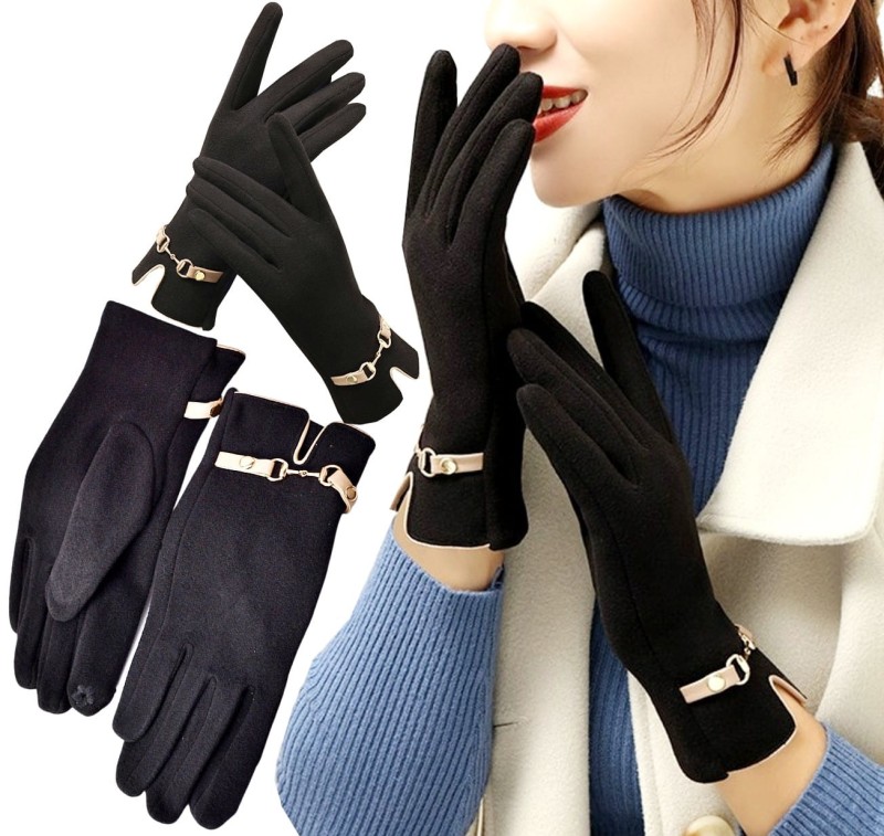 Rękawiczki damskie ciepłe, mięciutki materiał, bardzo wygodne z modną klamerką