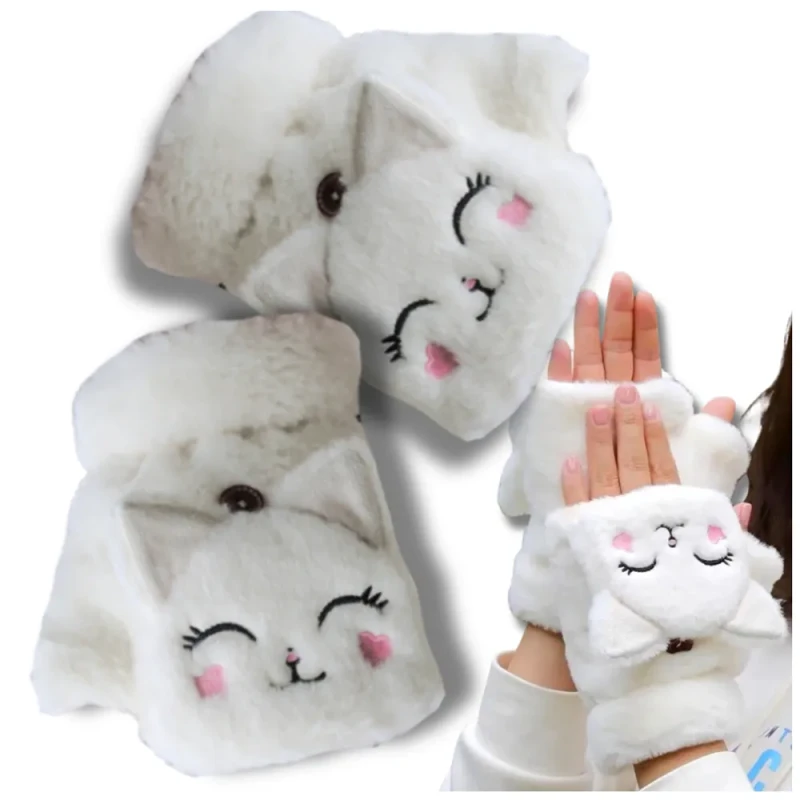 Rękawiczki zimowe damskie z klapką futrzane mitenki pluszowe – oryginalny wyrób w modnym stylu