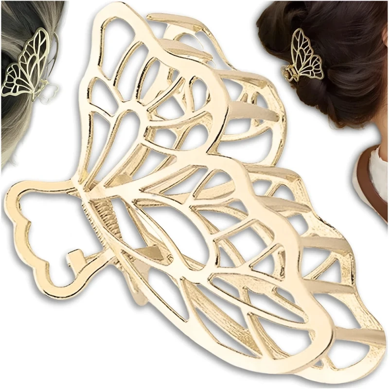 Elegancka Złota Spinka do Włosów - Metalowa Klamra Motyl