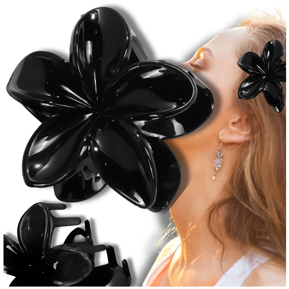 Spinka klamra do włosów kwiat plumerii szczęka czarna