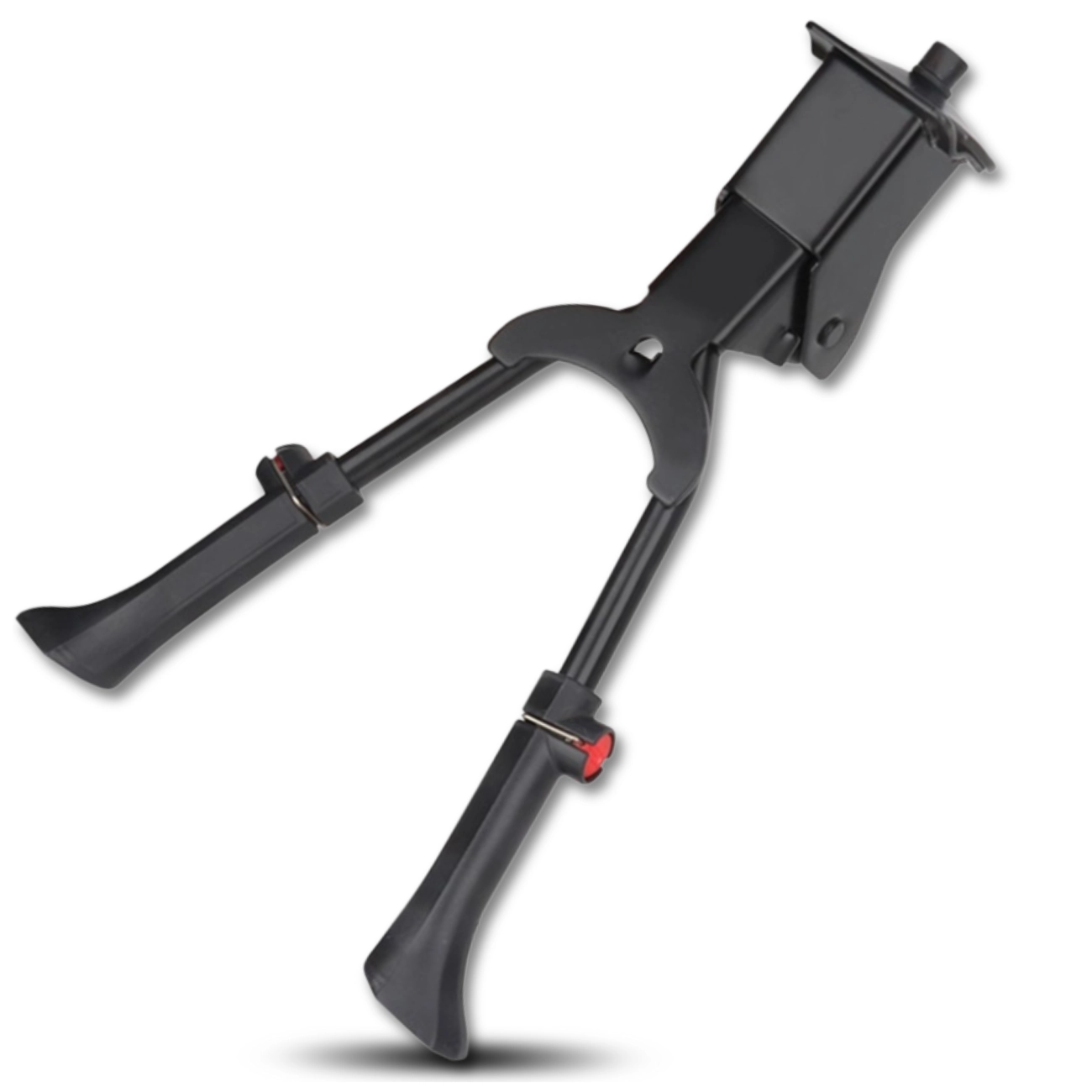 Stopka rowerowa została wyposażona w system regulacji długości – za pomocą praktycznych czerwonych przycisków można ją dostosować w zakresie od ok. 32 cm do ok. 36 cm. To rozwiązanie pozwala idealnie dopasować wysokość do roweru i preferencji użytkownika.