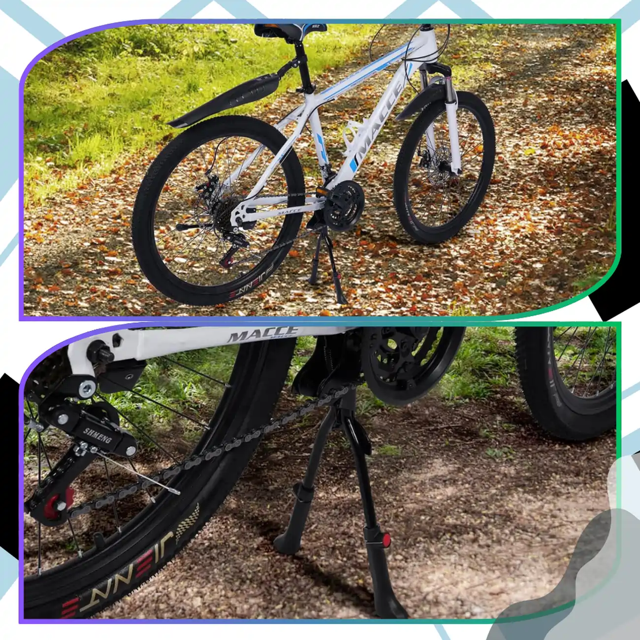 - Podwójne ramię nóżki zapewnia stabilność i równowagę dla roweru