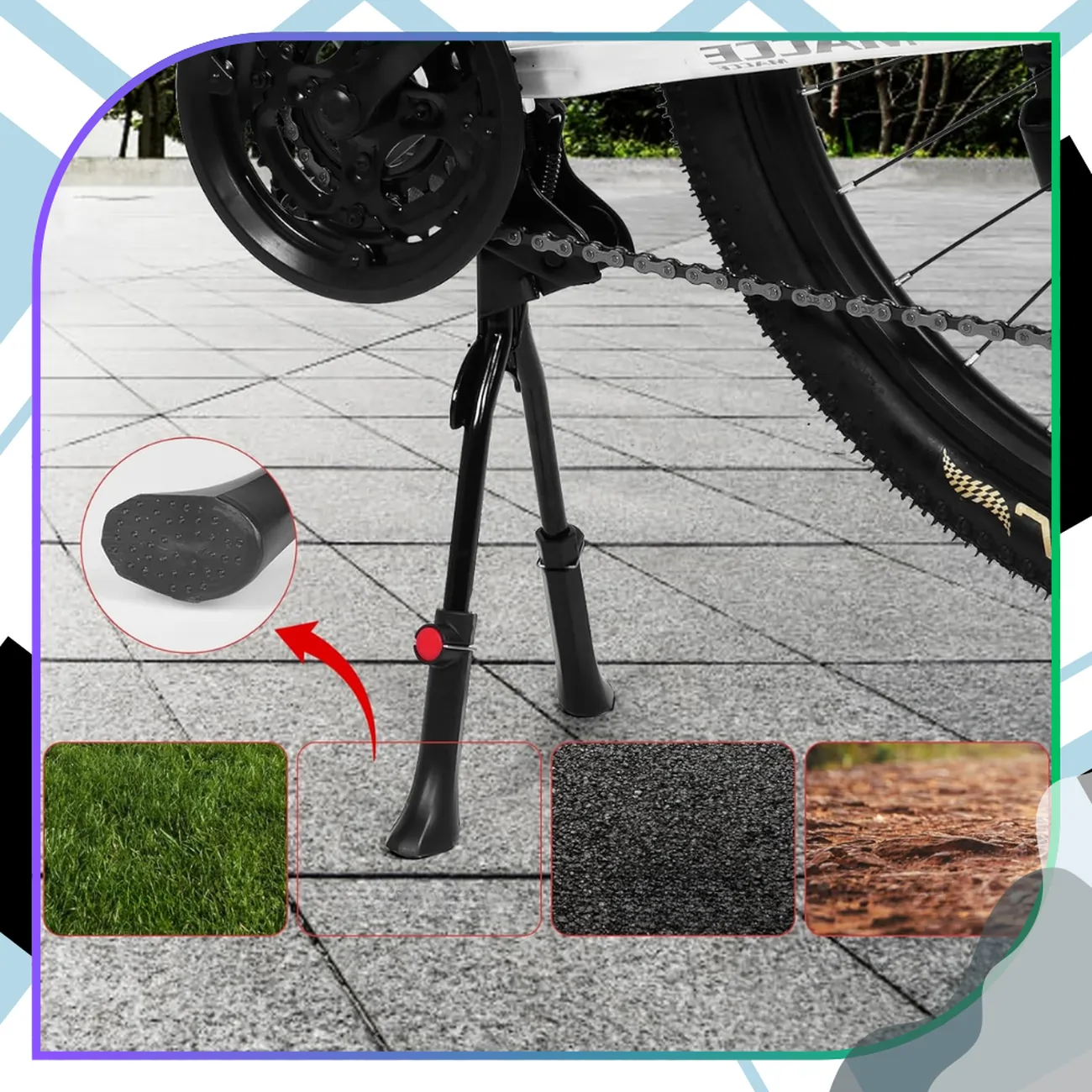 Wykonana z wysokiej jakości stopu aluminium, jest odporna na korozję, wodoodporna i niezwykle trwała. Antypoślizgowe końcówki dodatkowo zwiększają bezpieczeństwo i stabilność roweru, chroniąc go przed przypadkowym przewróceniem.