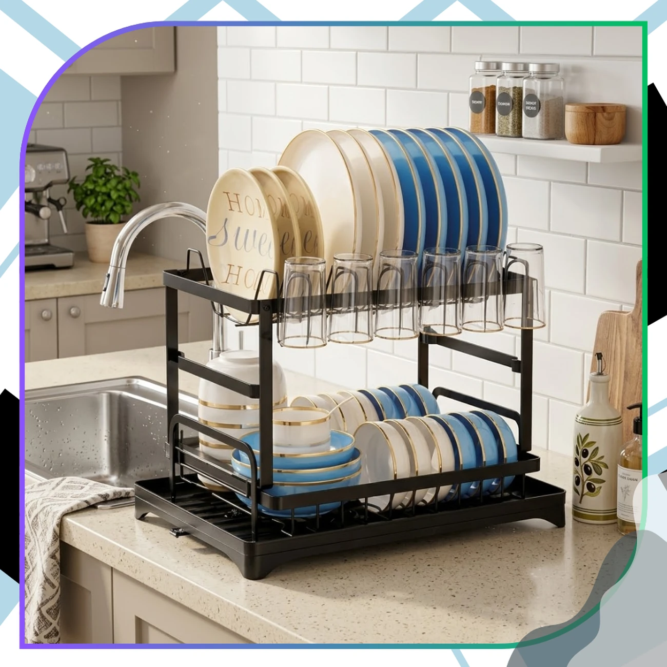 Funkcjonalny stojak na naczynia to rozwiązanie dla osób, które chcą utrzymać porządek bez zajmowania dużej przestrzeni. Dzięki dwupoziomowej konstrukcji możesz wygodnie oddzielić talerze od misek i innych elementów zastawy.