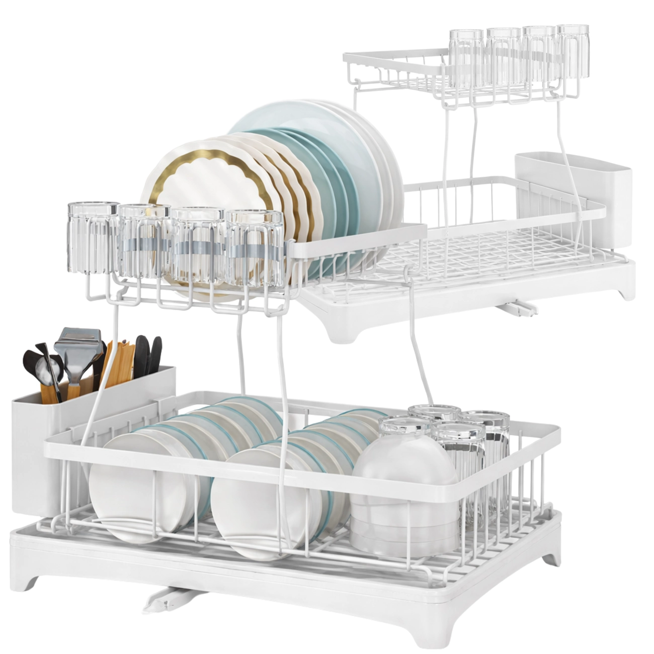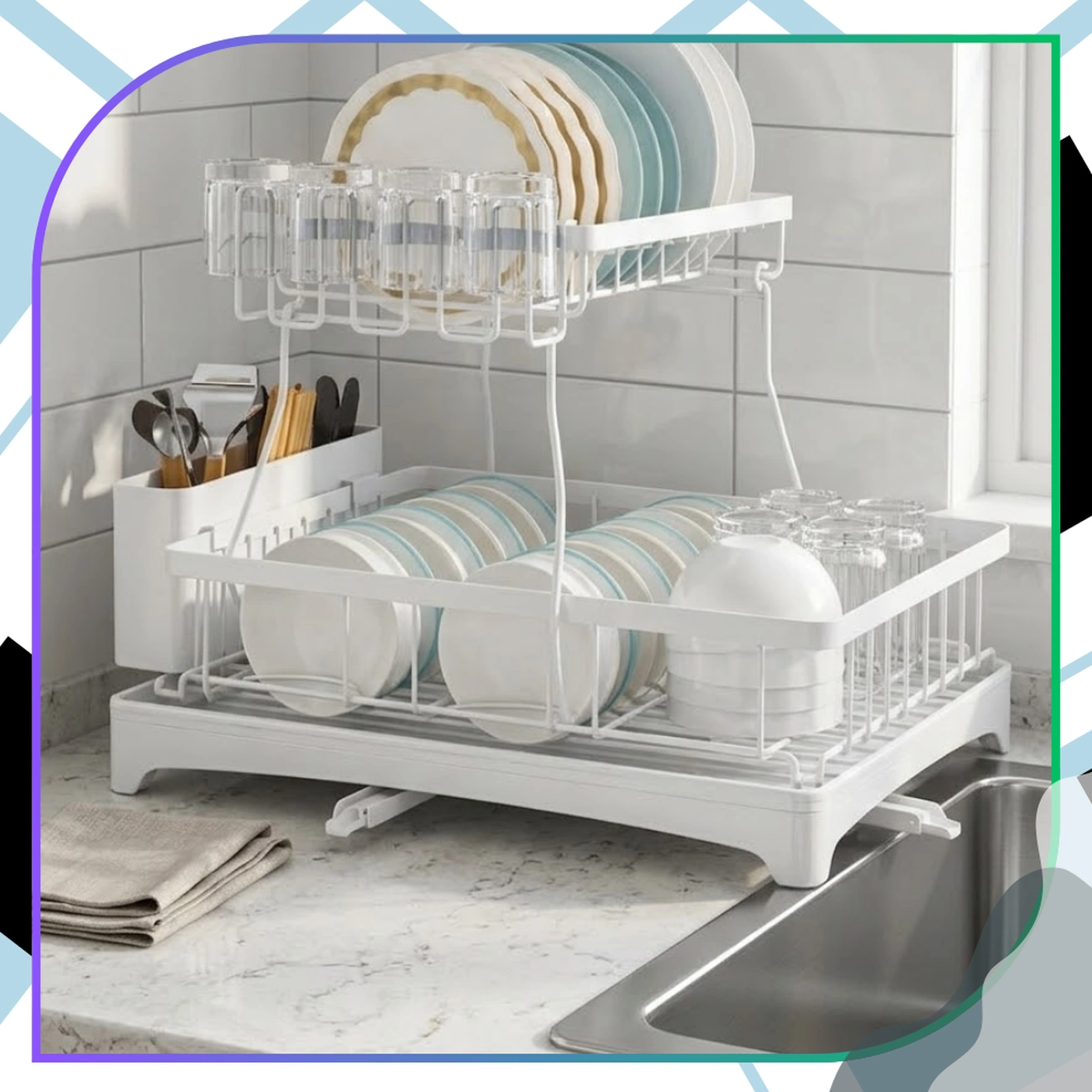 Ociekacz dwupoziomowy na naczynia - kubki, szklanki, talerze, miski i akcesoria: