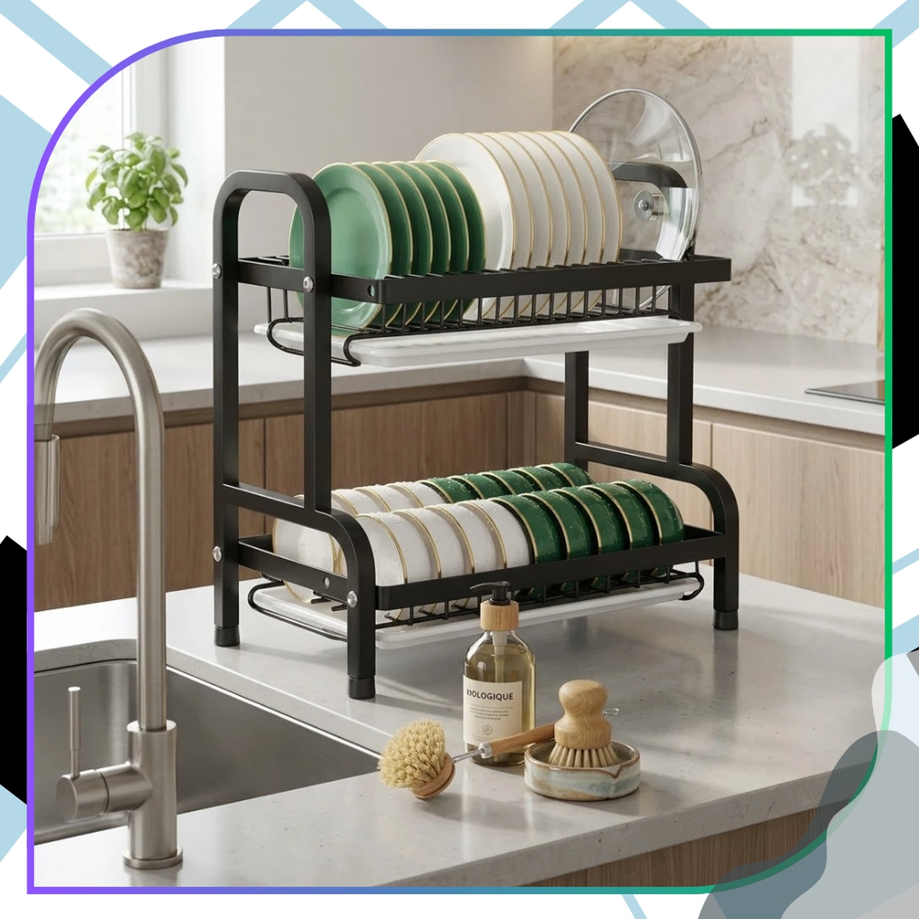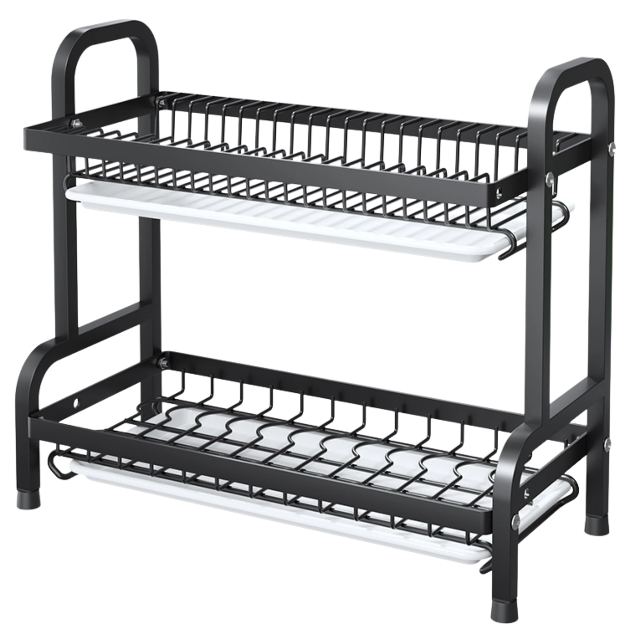 Suszarka Do Naczyń Dwupoziomowa Organizer Kuchenny Ociekacz Czarny 42cm