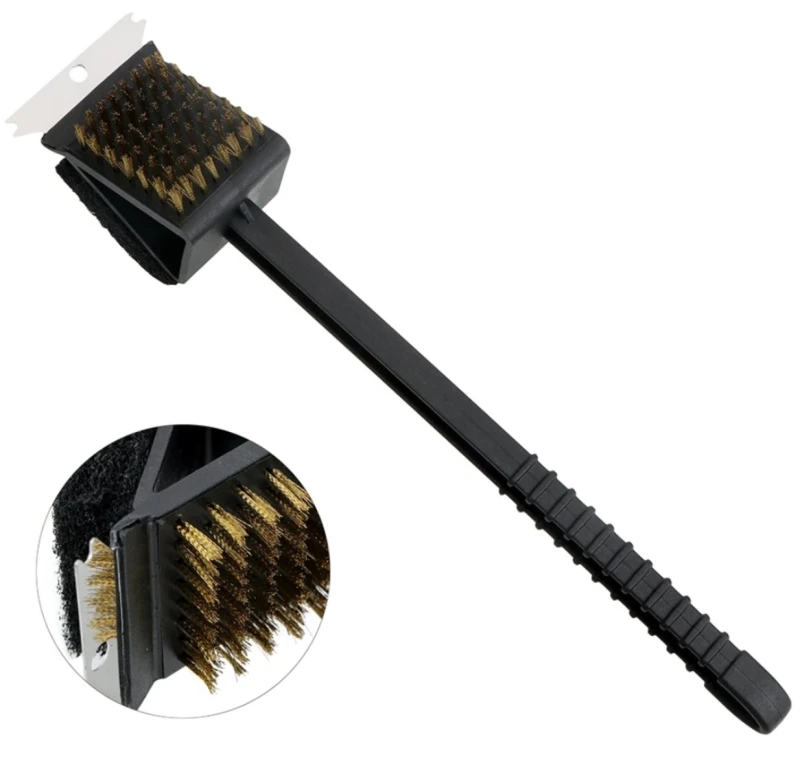 Szczotka do grilla z miedzianym drutem i gąbką 3 w 1