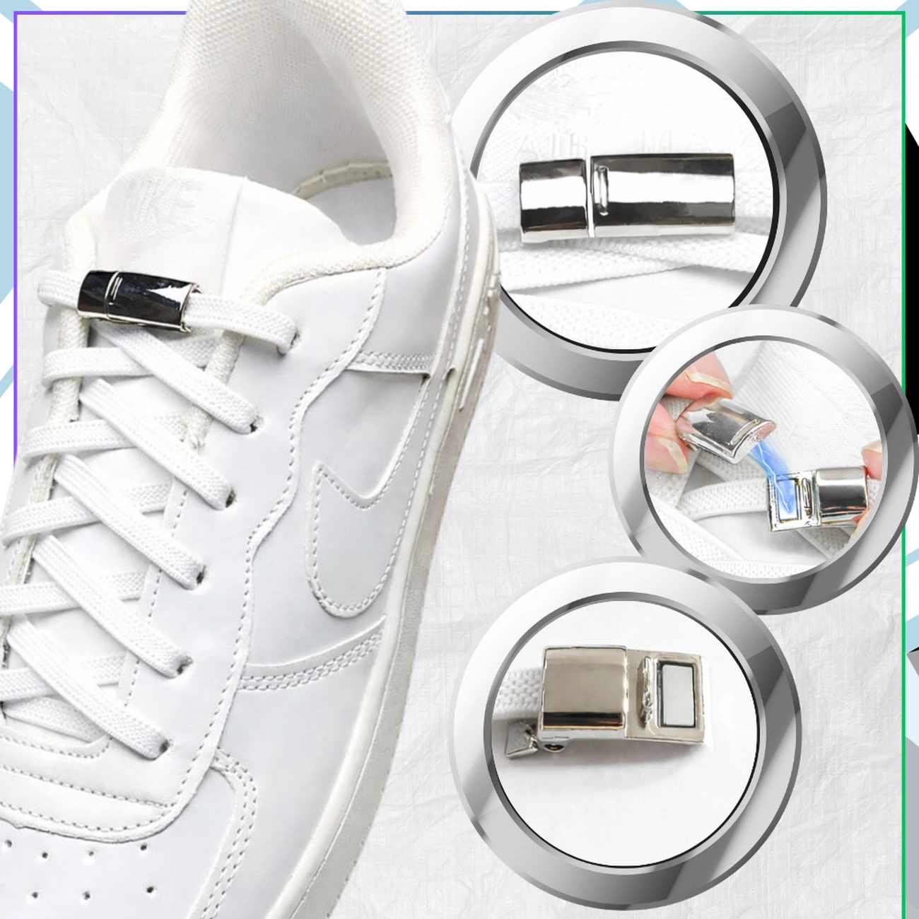 Klamra z magnesami (magnesy są bardzo mocne) zastępują tradycyjne wiązanie sznurowadeł