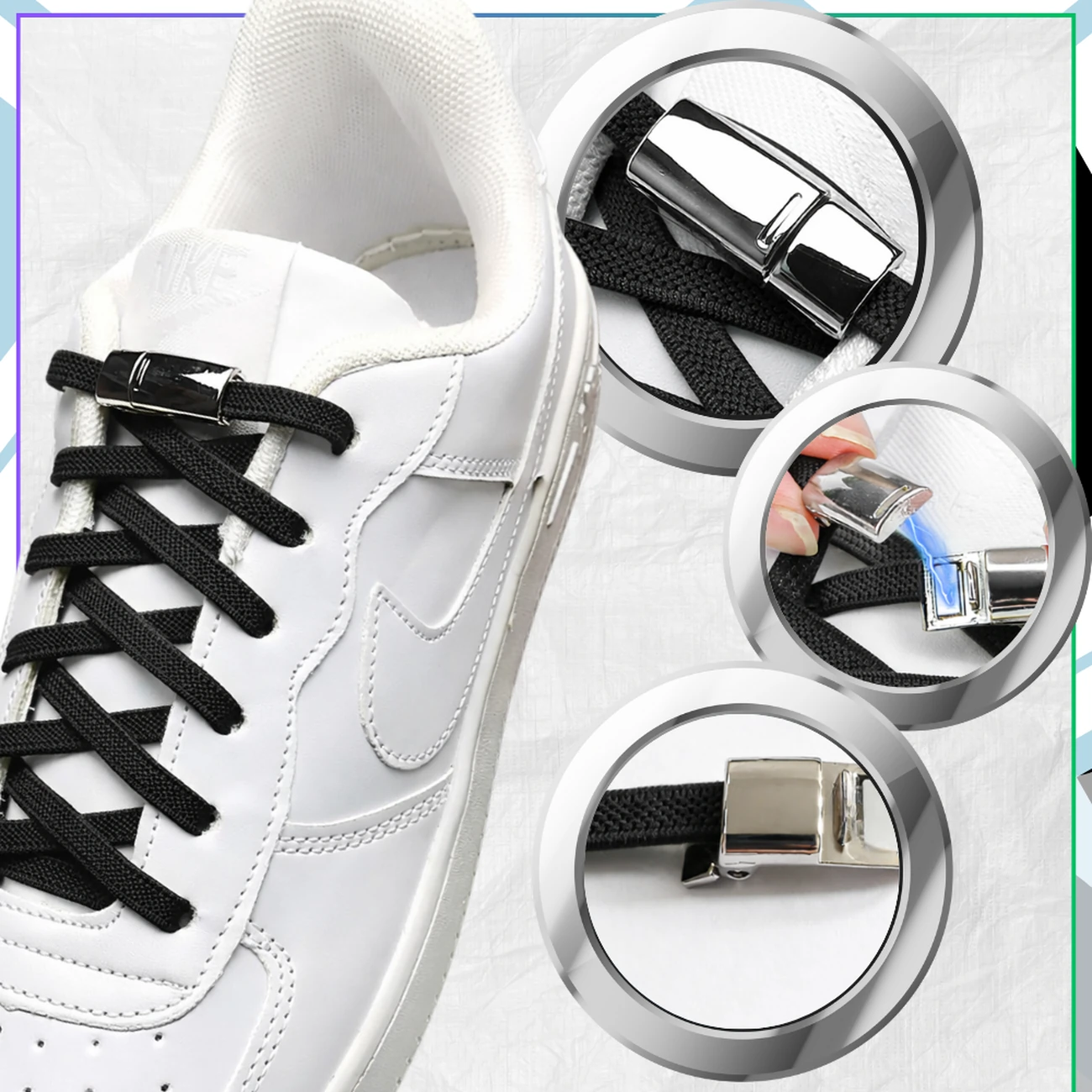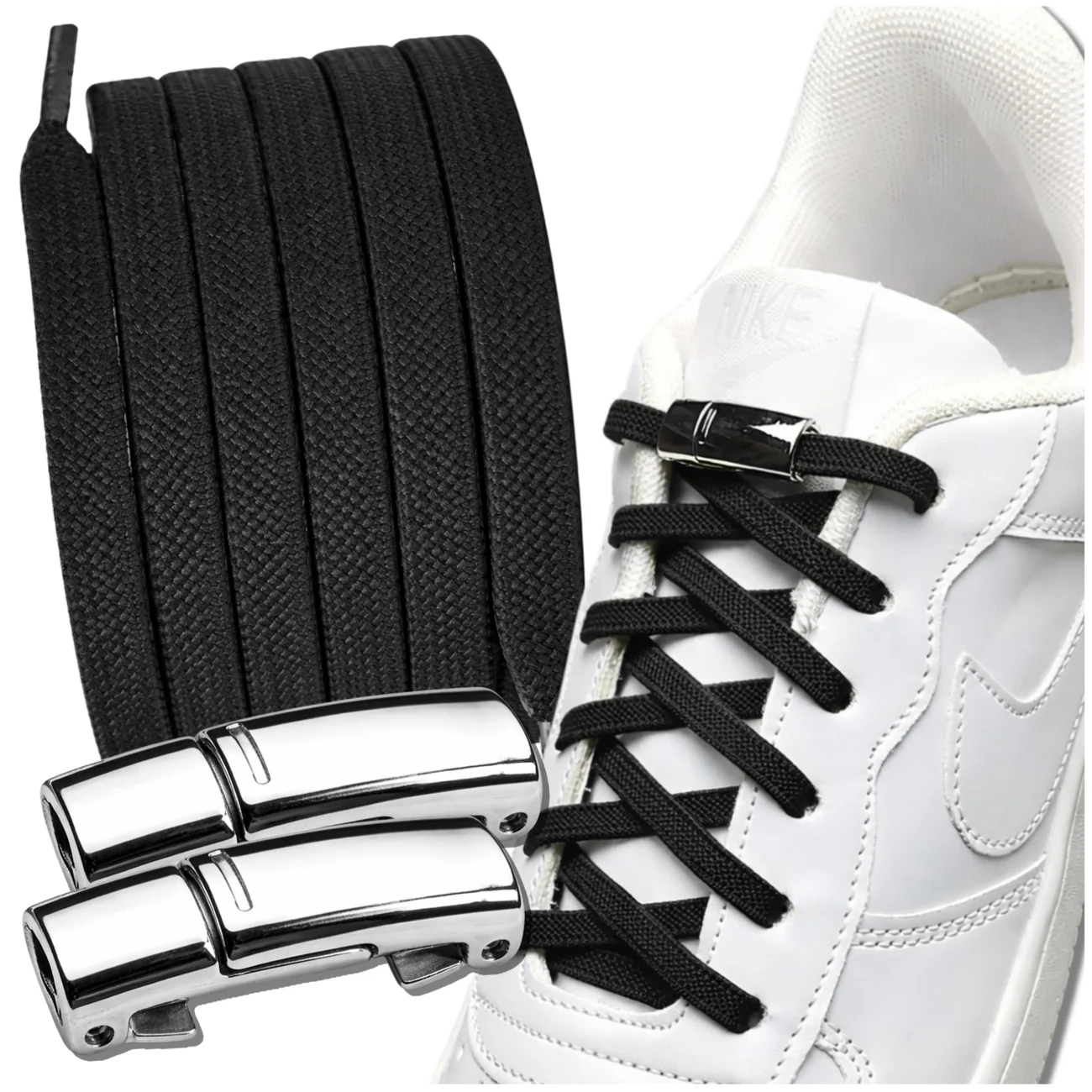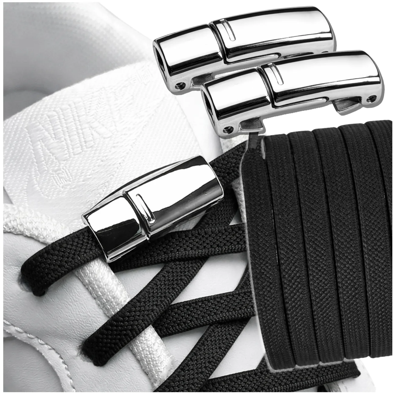 Sekretem tego produktu jest magnetyczne zapięcie, które zastępuje tradycyjne wiązanie. W obu elementach klamry znajdują się bardzo mocne magnesy, które automatycznie przyciągają się do siebie, zapewniając pewne i trwałe zapięcie. Dzięki temu sznurowadła są nie tylko praktyczne, ale także bezpieczne – nie ma ryzyka, że rozwiążą się podczas chodzenia.