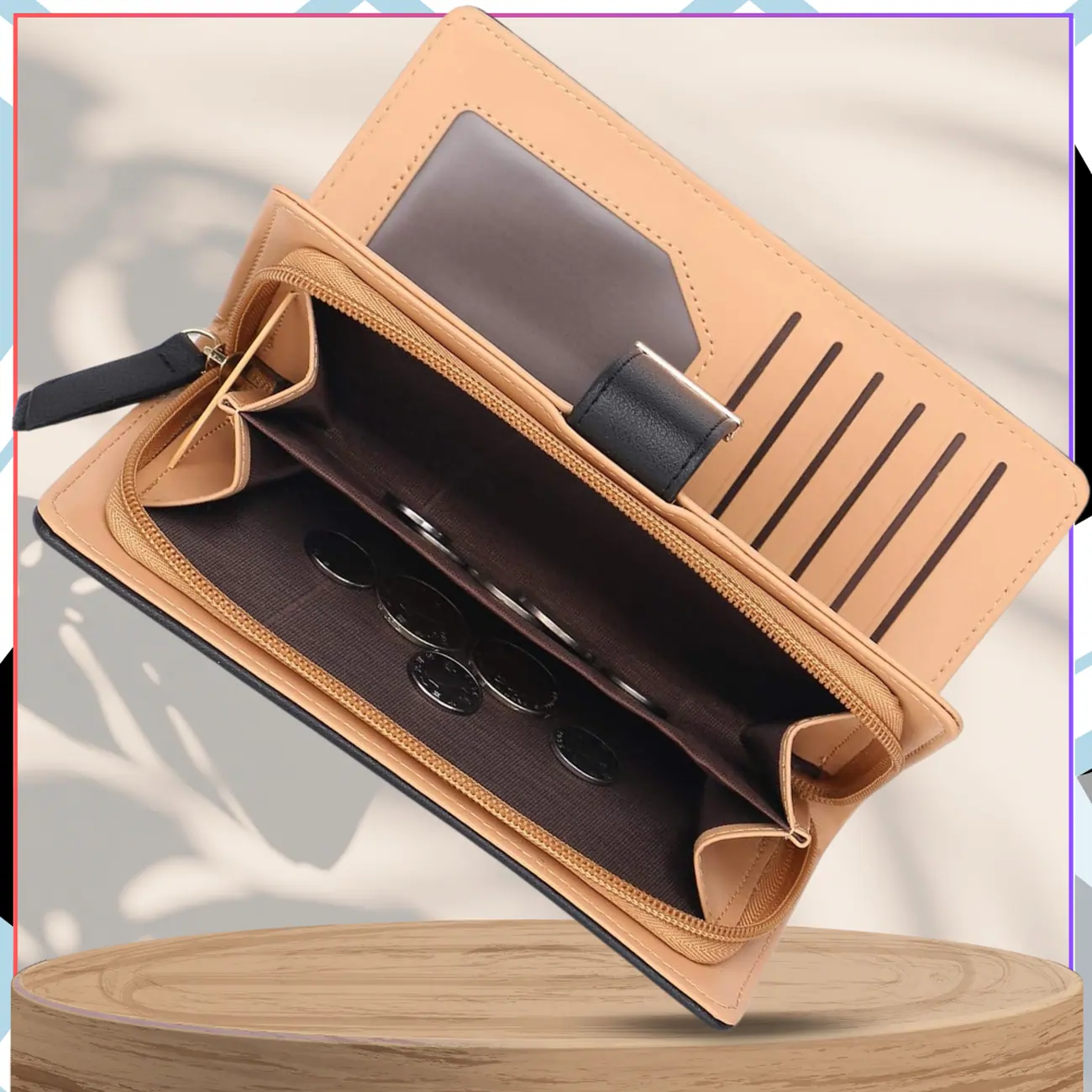 - Przestrzeń, która pomieści telefon, czyniąc portfel uniwersalnym dodatkiem.