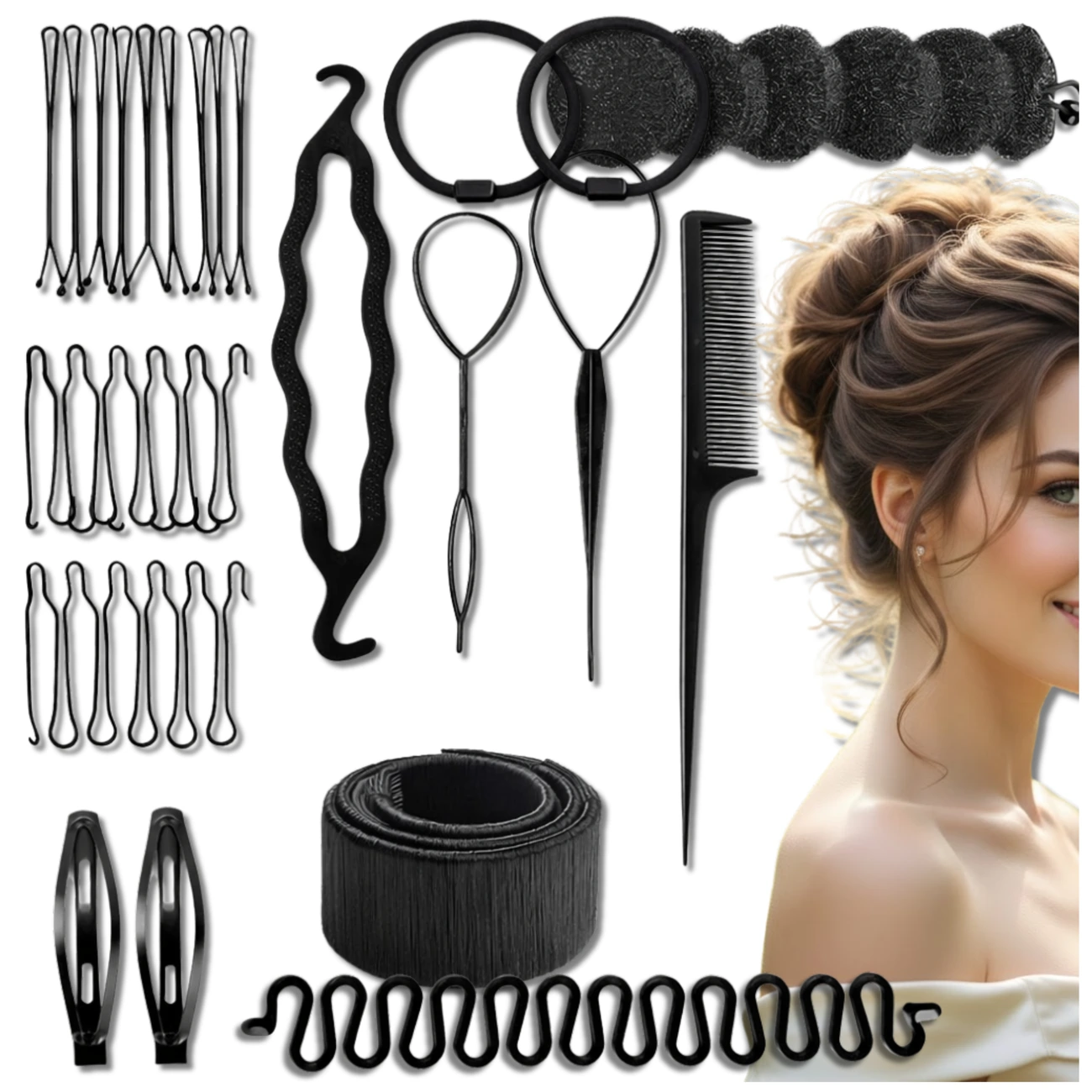 Ten Komplet bardzo ułatwia ułożenie profesjonalnie wyglądającej fryzury lub koka