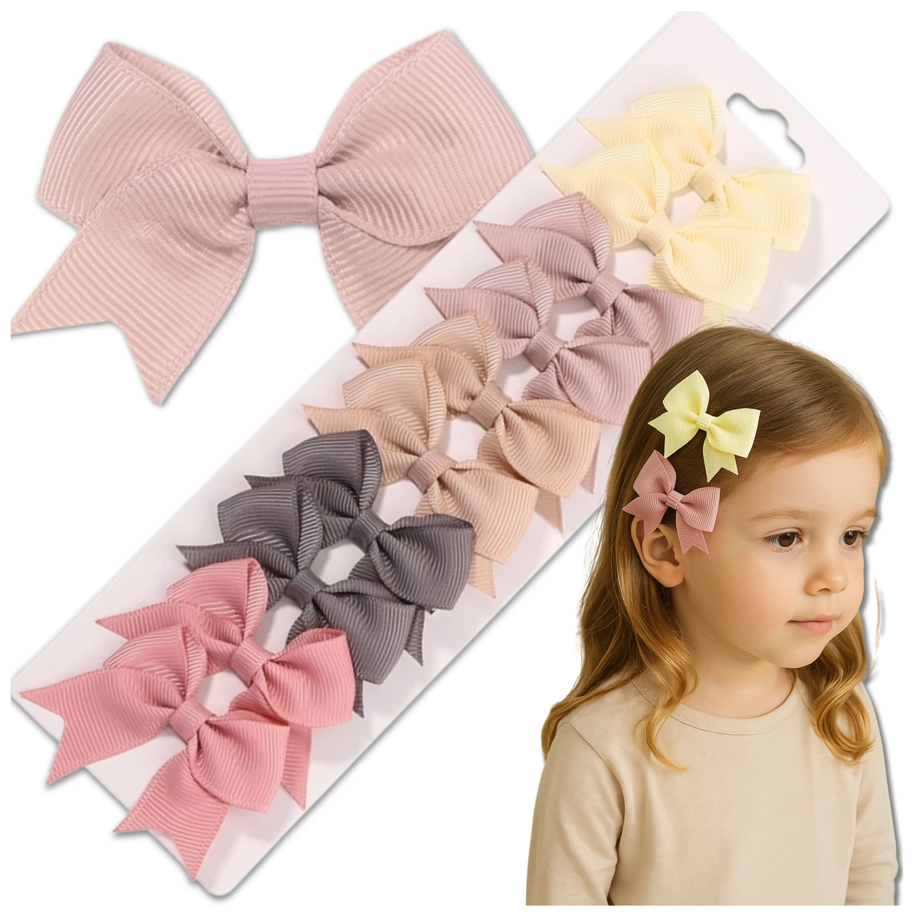 Zestaw 10 szt. dziecięcych spinek kolorowe kokardki – przyda się na różne okazje