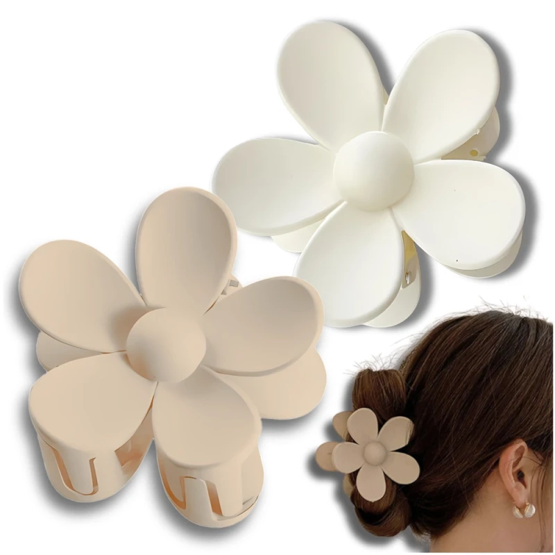 Zestaw 2 Matowych Klamer do Włosów w Kształcie Kwiatu Beżowa i Kremowa 8 cm Boho