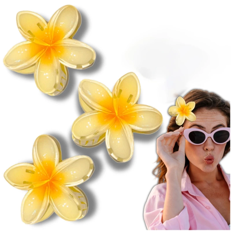 Zestaw 3 Żółtych Spinek do Włosów 8 cm Tropikalny Styl Wakacyjny z Kwiatami Plumerii