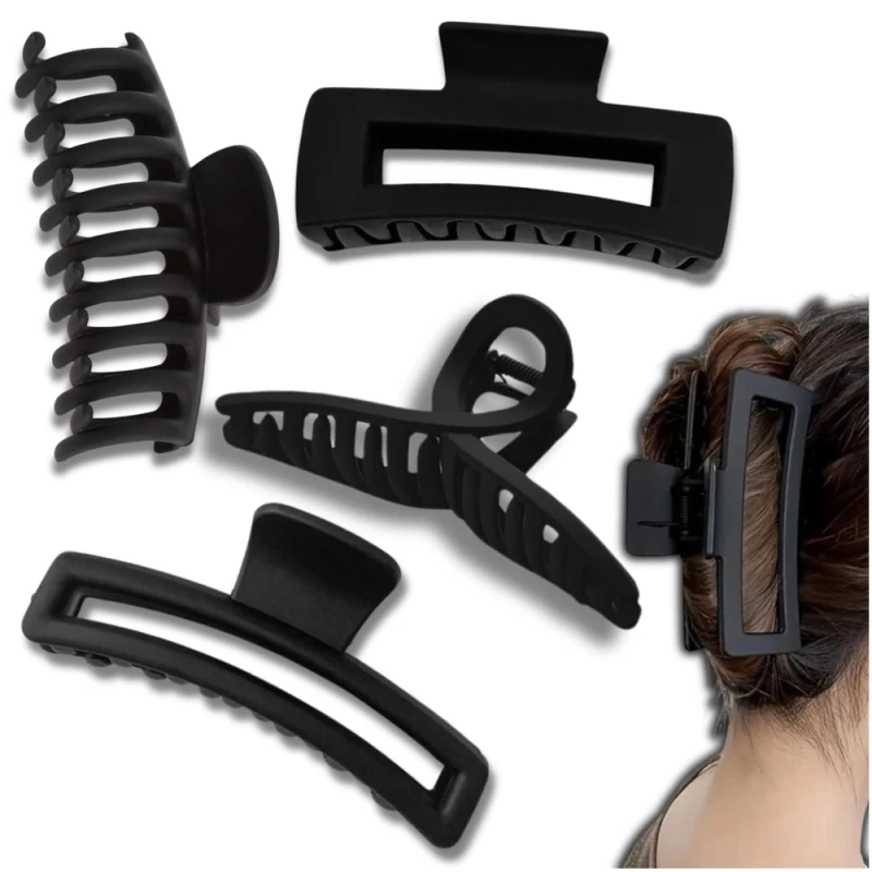 Zestaw 4 Solidnych Czarnych Spinek do Włosów Duża Klamra na Co Dzień