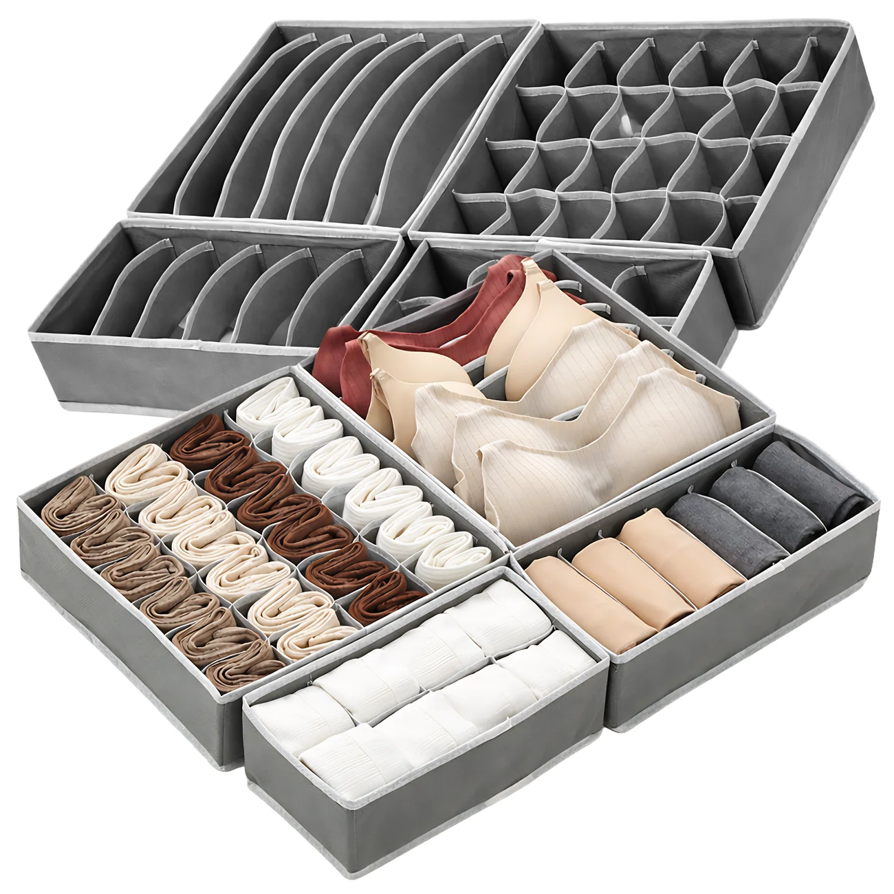 Dzięki różnym rozmiarom przegród organizer do szuflady sprawdzi się zarówno do drobnych akcesoriów, jak i większych części odzieży. To świetny wybór do garderoby, komody, szafy lub półki. Organizer na bieliznę pomaga zaoszczędzić czas podczas codziennego wybierania ubrań, a jednocześnie poprawia estetykę przechowywania.