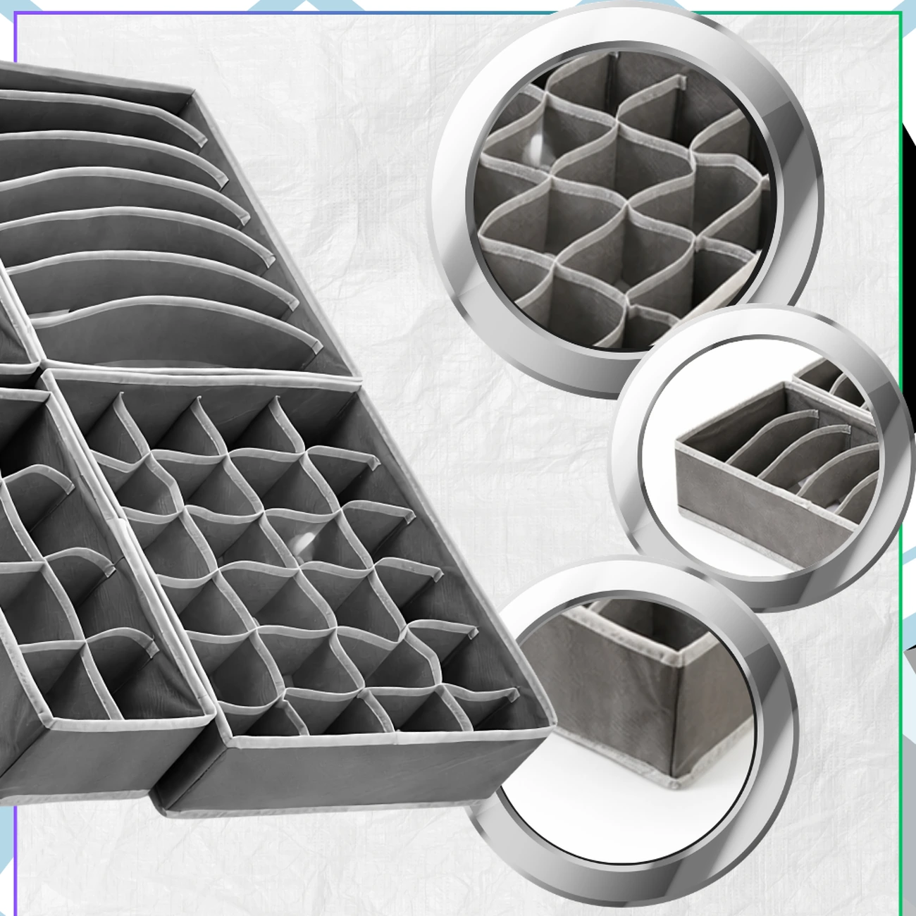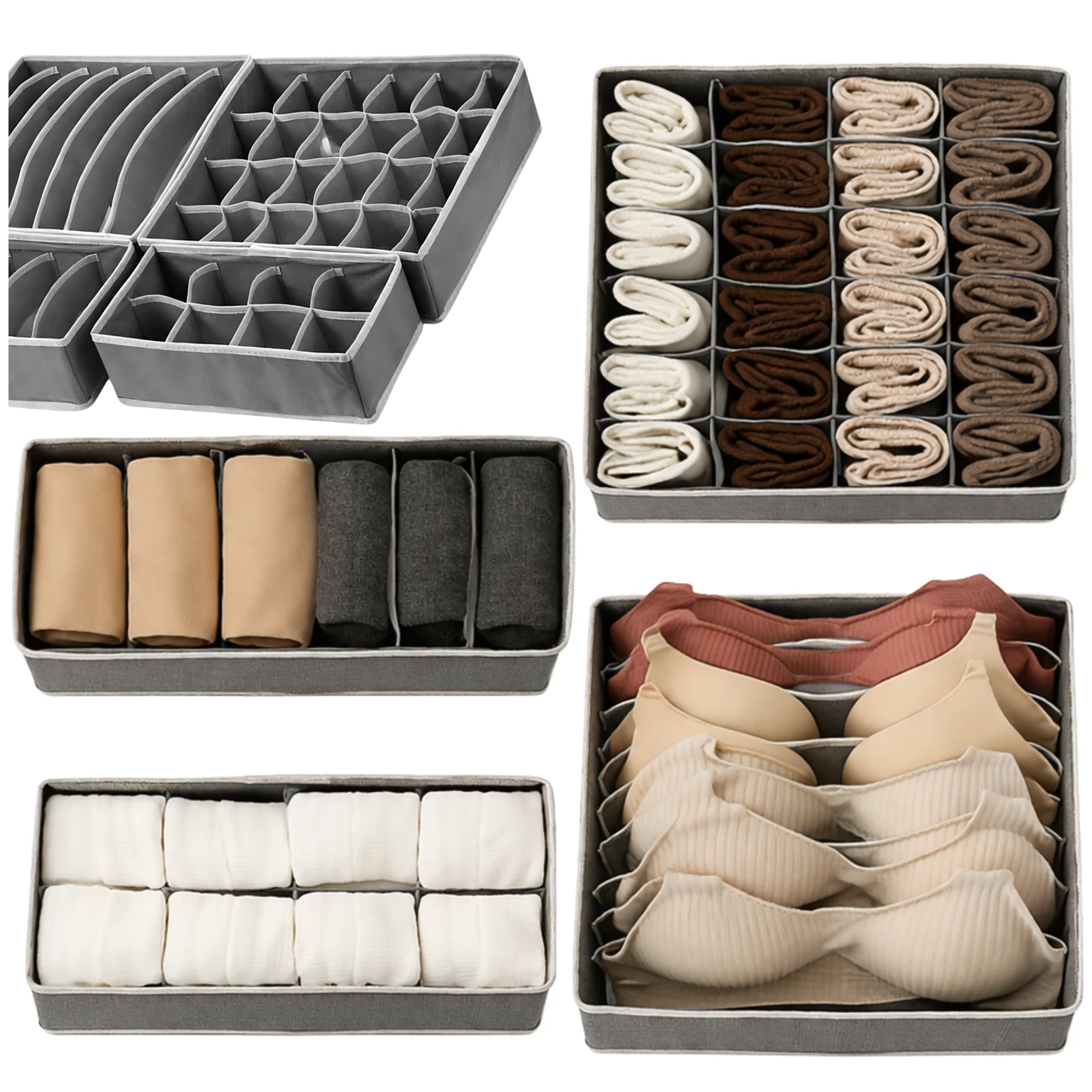 Utrzymanie porządku w szafie i szufladach jeszcze nigdy nie było tak proste. Nowy zestaw organizerów do szafy to praktyczne rozwiązanie dla osób, które cenią wygodę, estetykę i dobrze zagospodarowaną przestrzeń. Komplet 4 pojemników z przegródkami pozwala uporządkować bieliznę, skarpetki, legginsy, koszulki oraz inne elementy garderoby, dzięki czemu każda rzecz ma swoje miejsce i jest zawsze pod ręką.