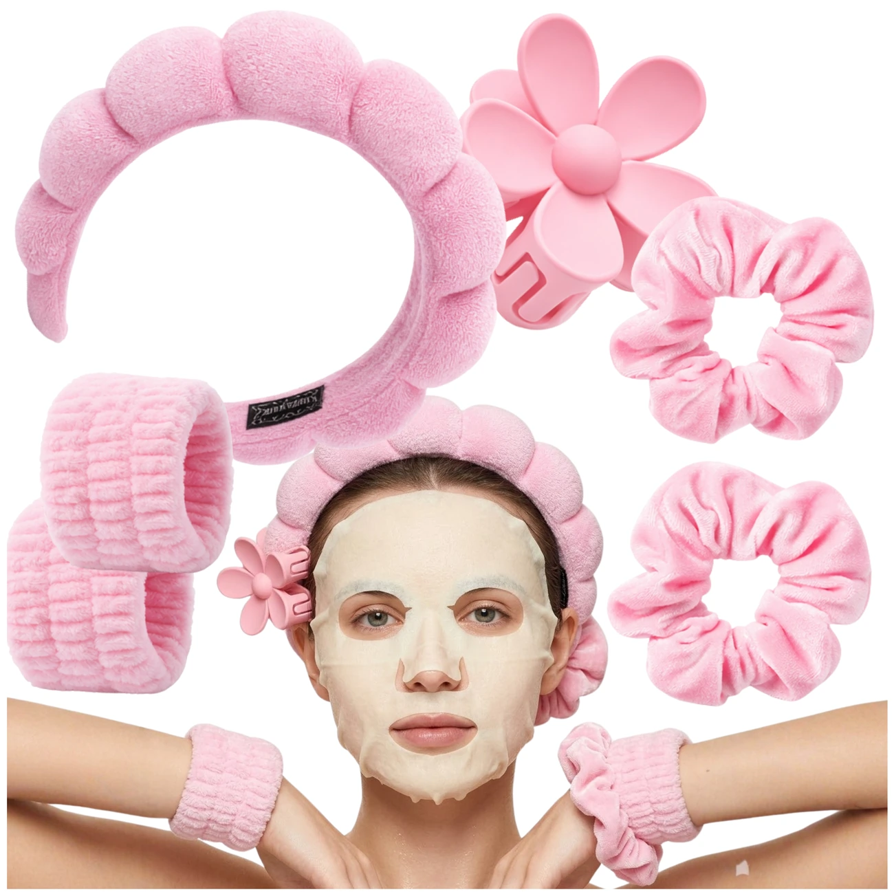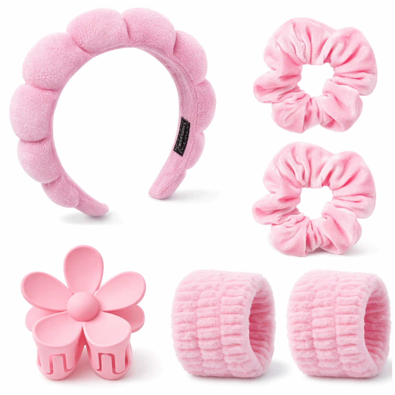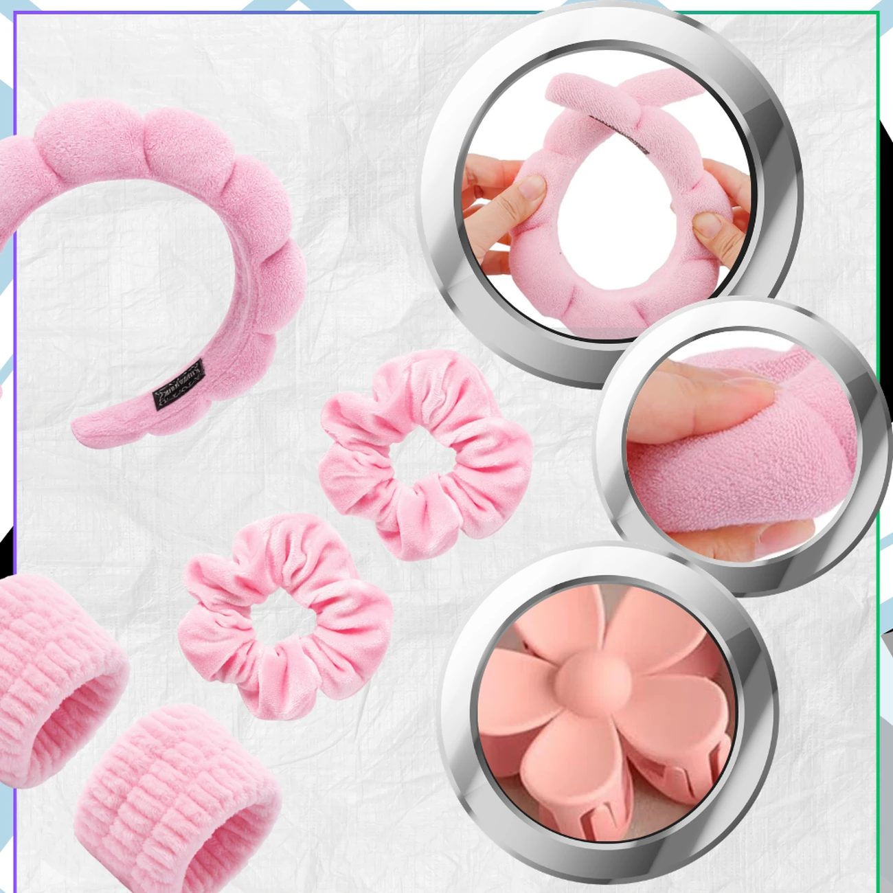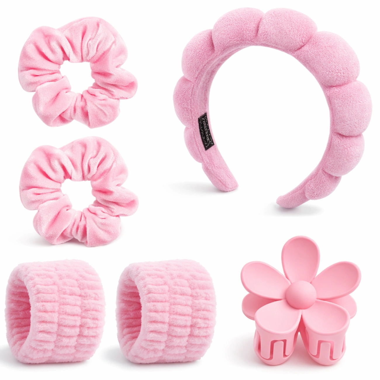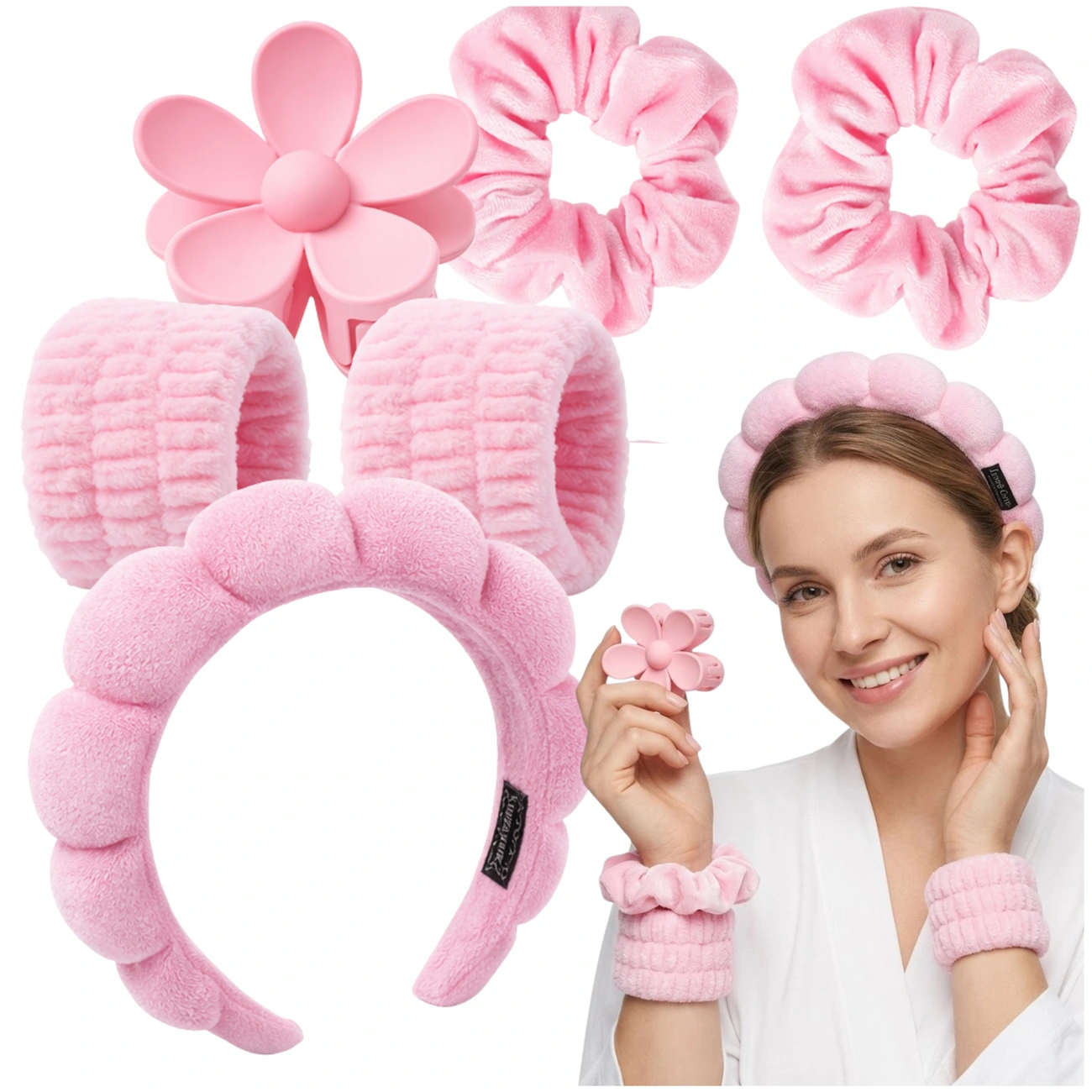 Praktyczny zestaw akcesoriów do włosów w delikatnym różowym kolorze: