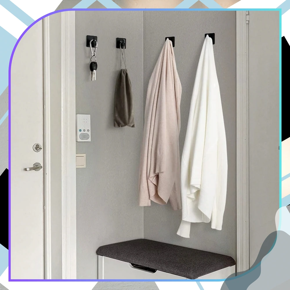 Każdy haczyk z kompletu ma szerokość 4,5 cm i wysokość 4,5 cm. Po przyczepieniu do ściany znajdują się one w odległości od niej, wynoszącej 2,6 cm.