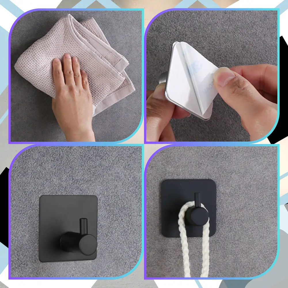 Wszystkie haczyki mają powłokę samoprzylepną, która ułatwia ich przymocowanie do ścian. Polecany przez nas zestaw samoprzylepnych haczyków naściennych 3 sztuki czarny Loft jest w całości wykonany z metalu, starannie pokrytego farbą o matowym wykończeniu. Zastosowany do produkcji materiał nie będzie korodował z powodu wilgoci.