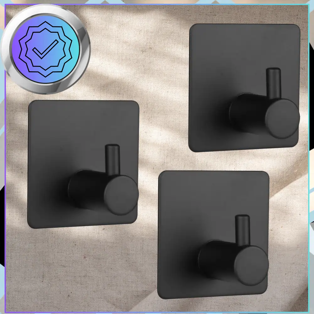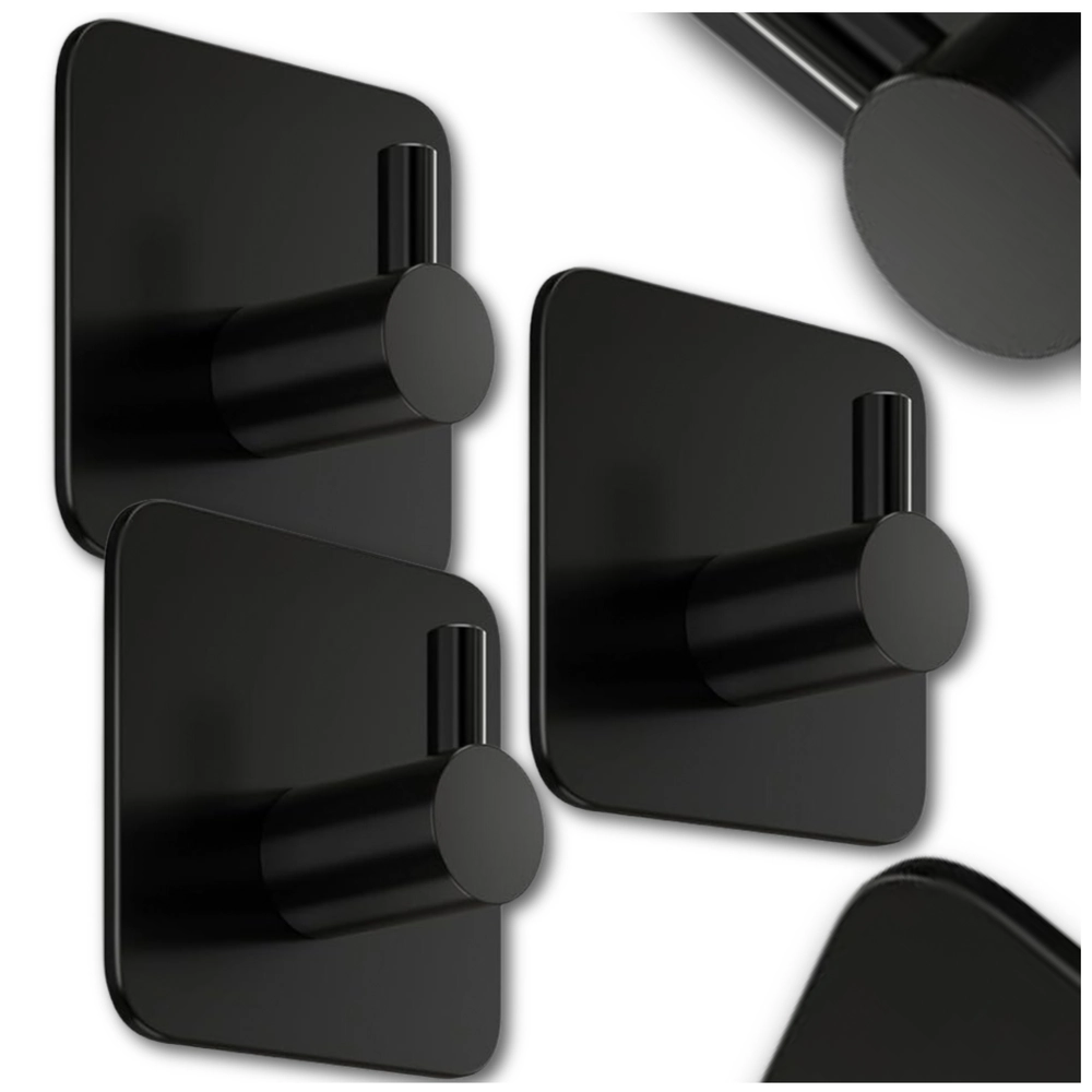 Zestaw haczyków naścienny 3 sztuki samoprzylepne czarny Loft – funkcjonalny komplet akcesoriów łazienkowych